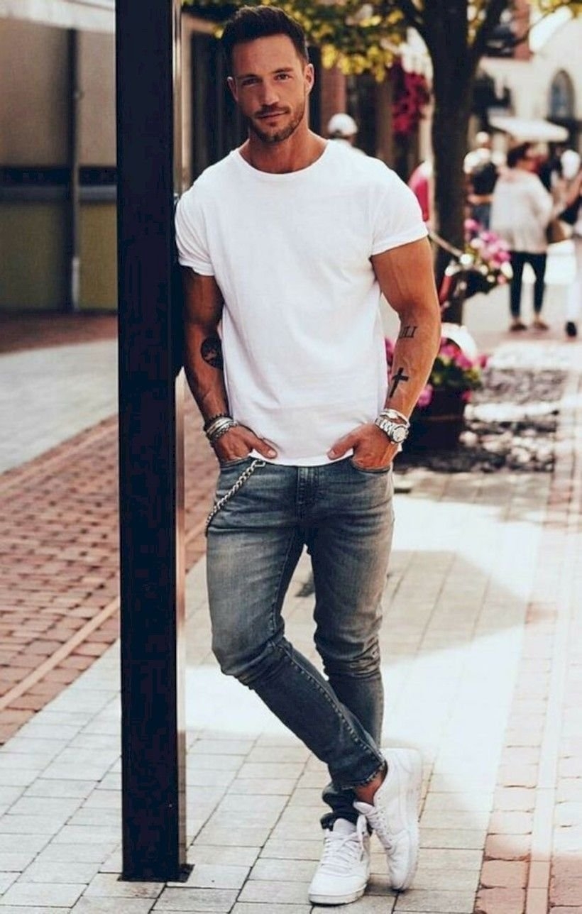 Джинсы с футболкой мужские