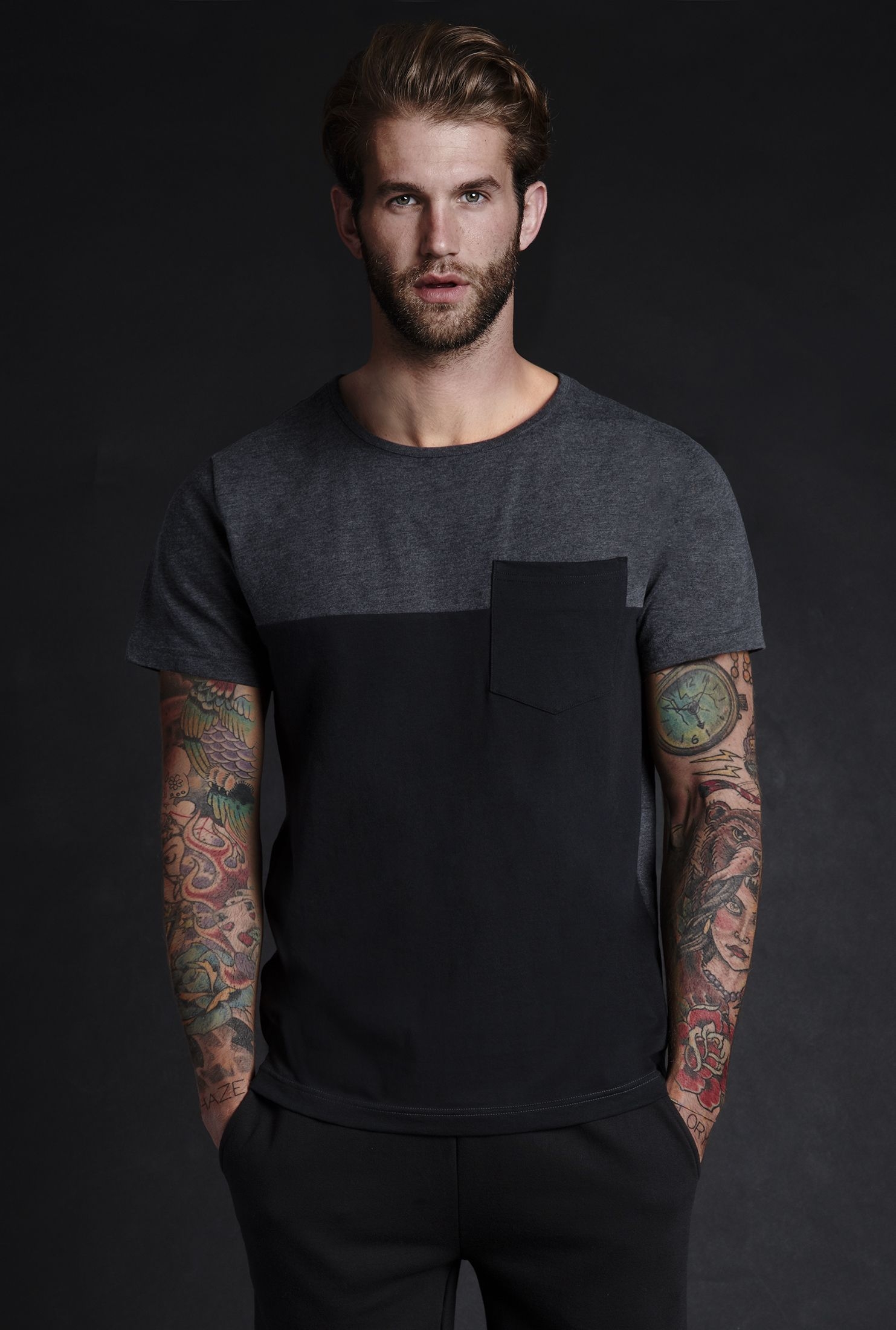 Бородатый мужчина в черной футболке