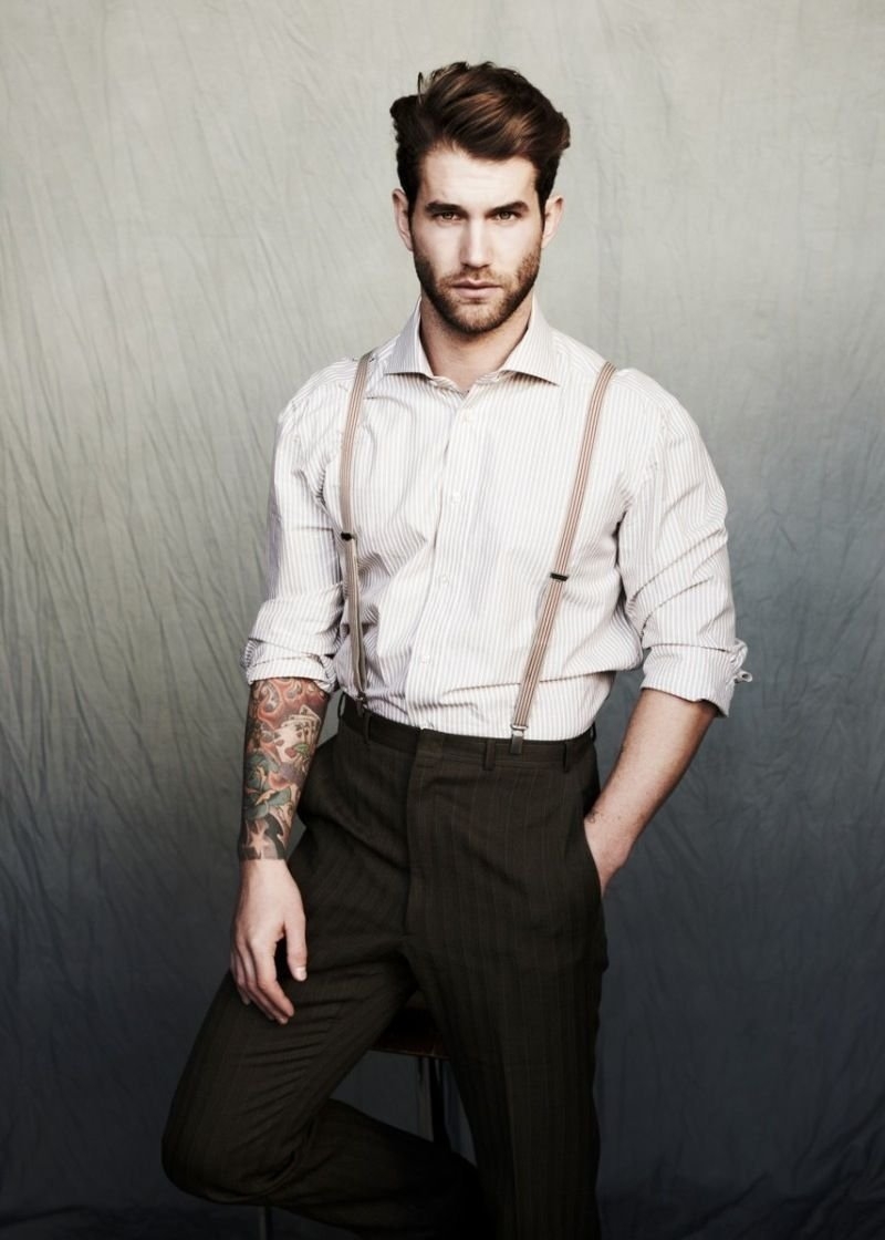 Мужчины в подтяжках и рубашке