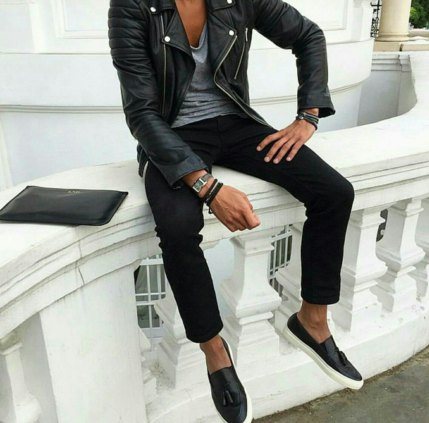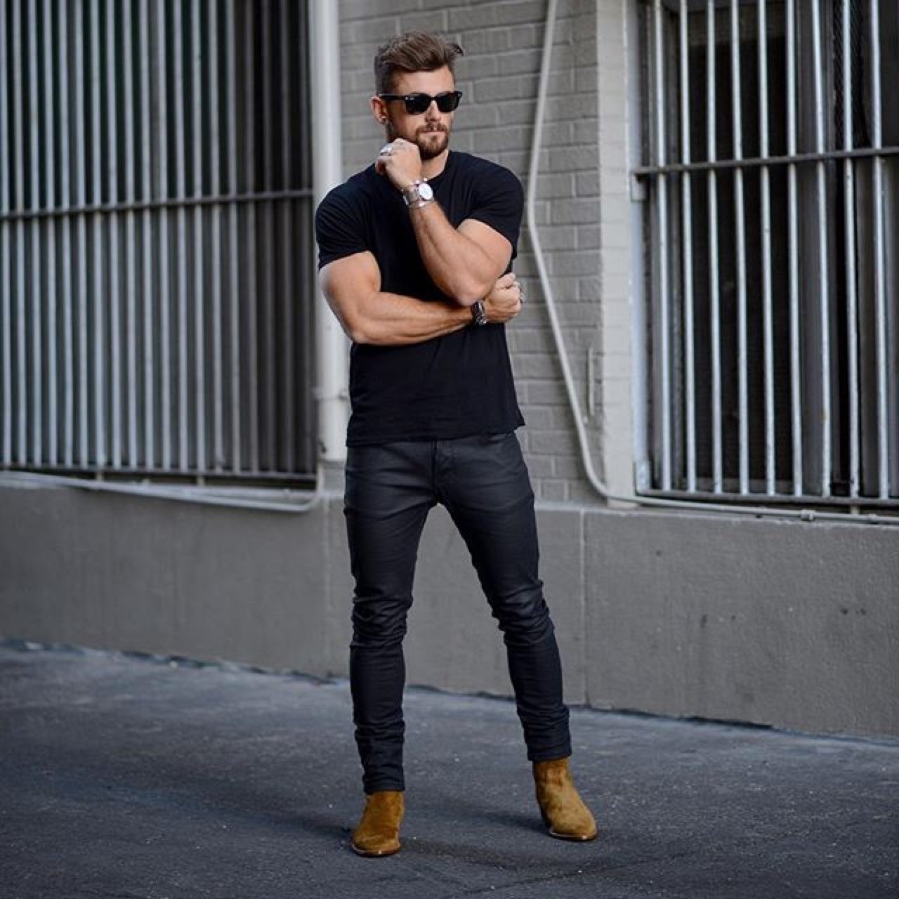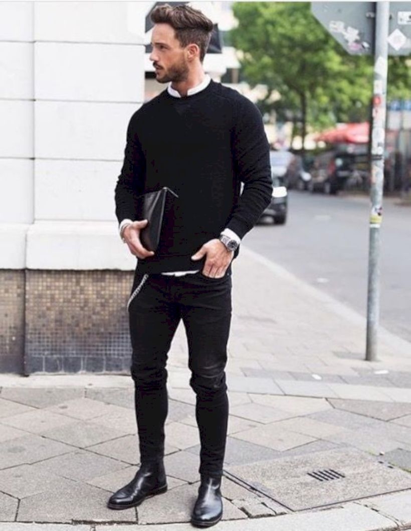 Мужской лук черные джинсы