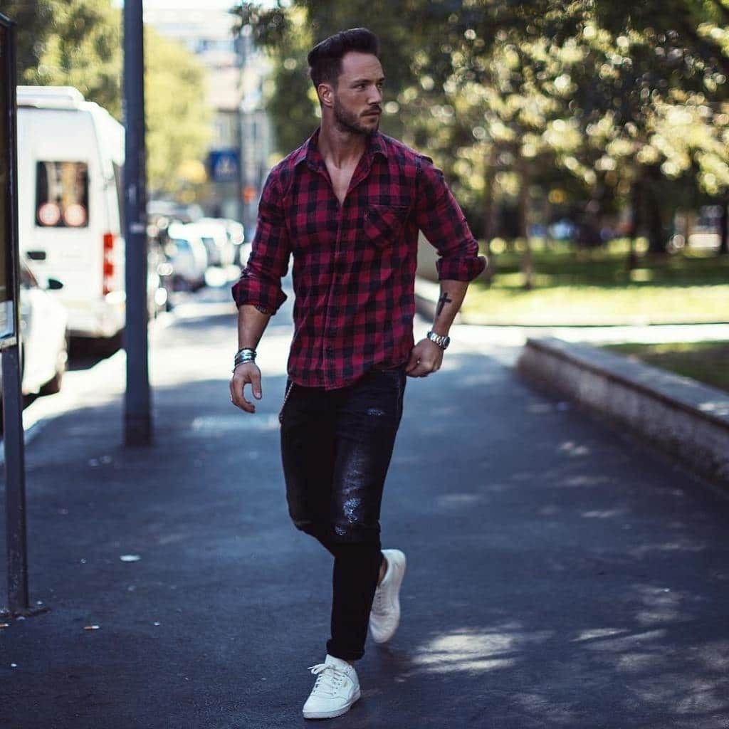 Стиль с клетчатой рубашкой мужские
