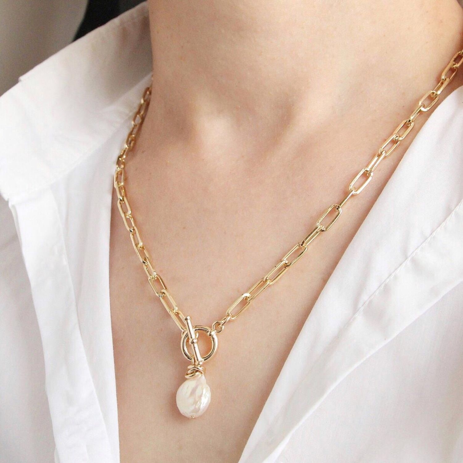 Тонкая цепочка с жемчугом
