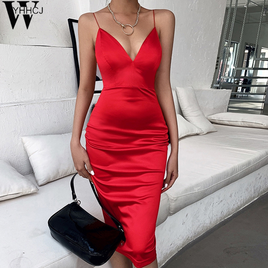 Облегающее атласное платье