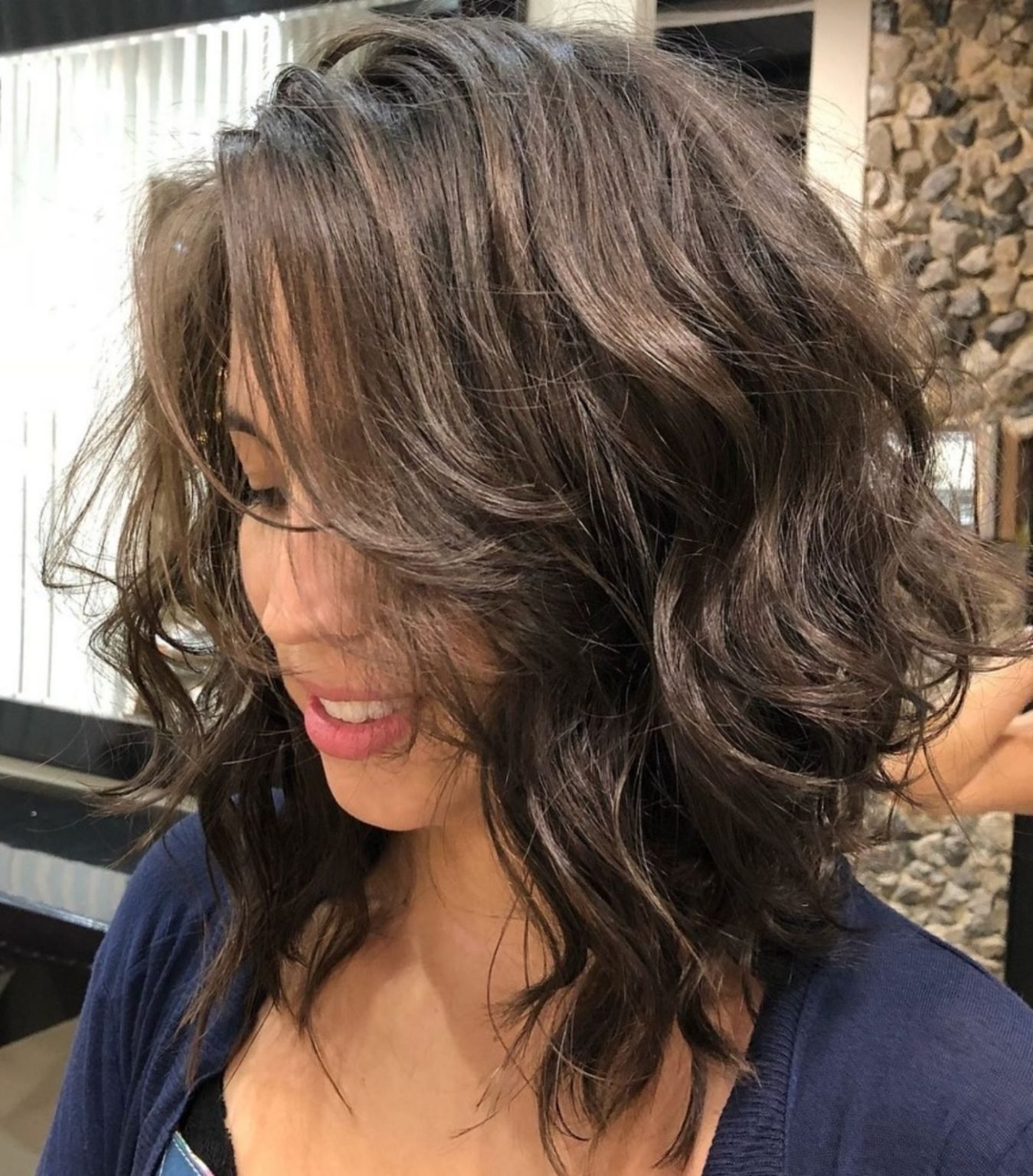 Лонг Боб Каскад на средние вьющиеся волосы