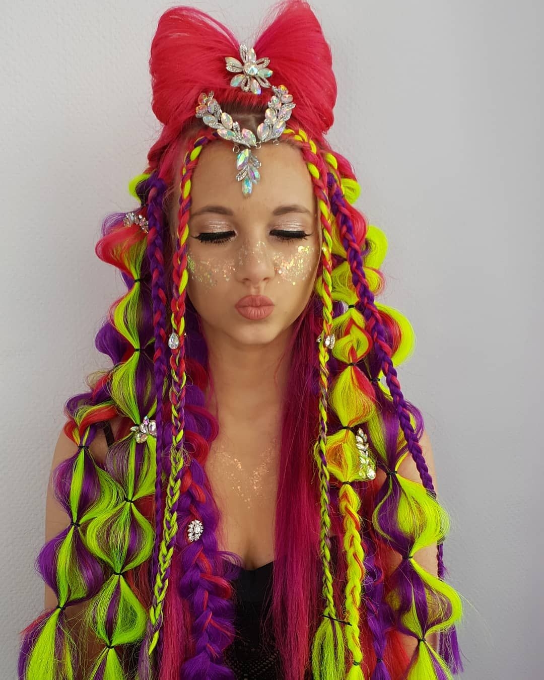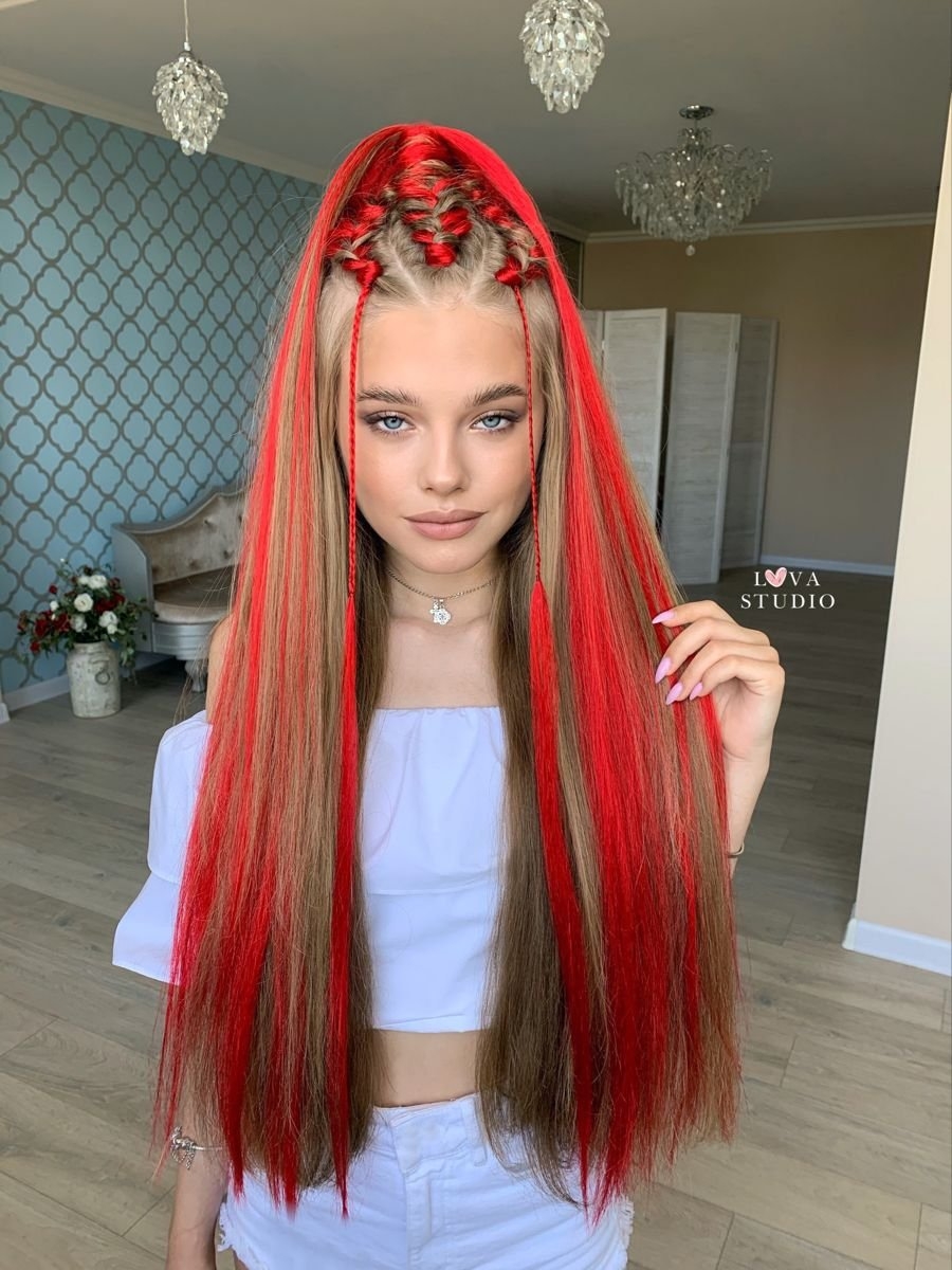 Косички с разноцветными прядями