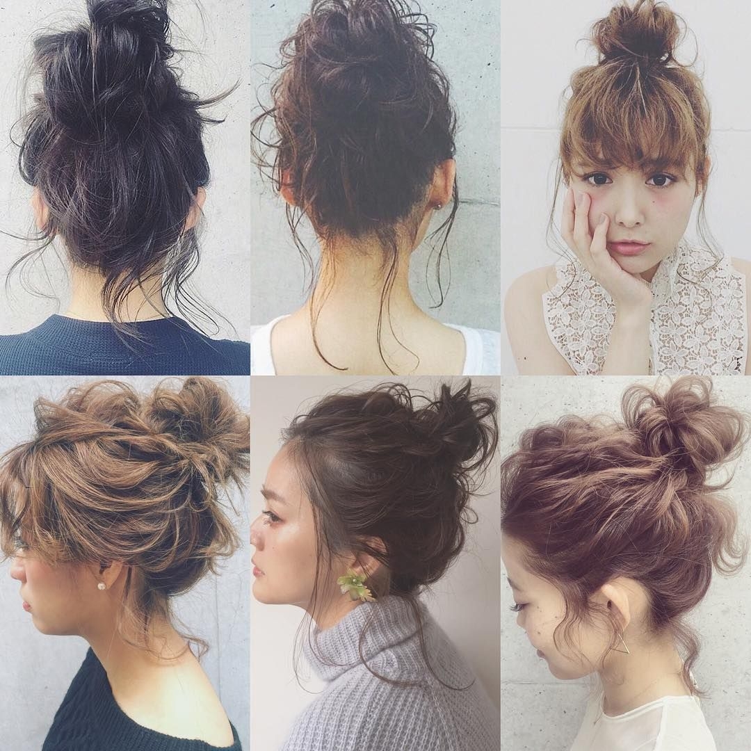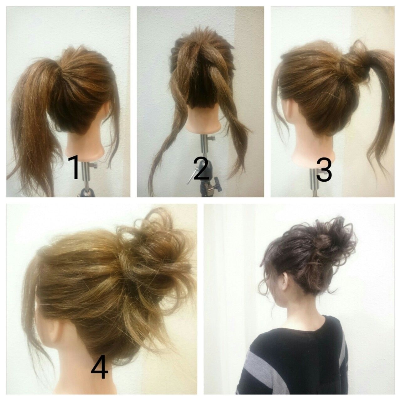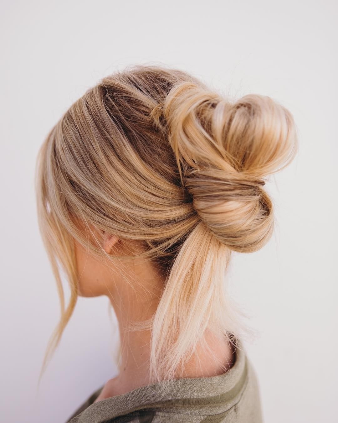 Небрежный пучекна средние волосы
