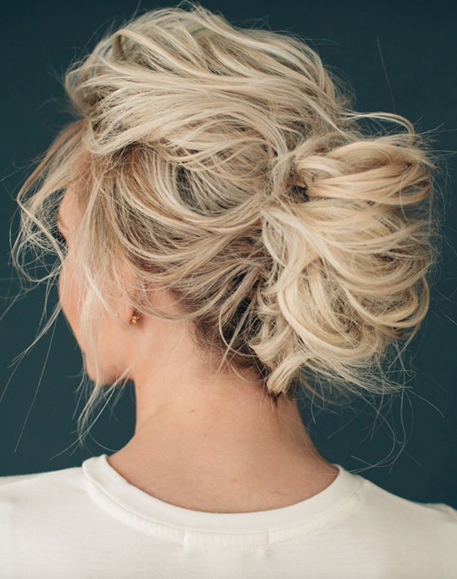 Небрежный пучок на короткие волосы