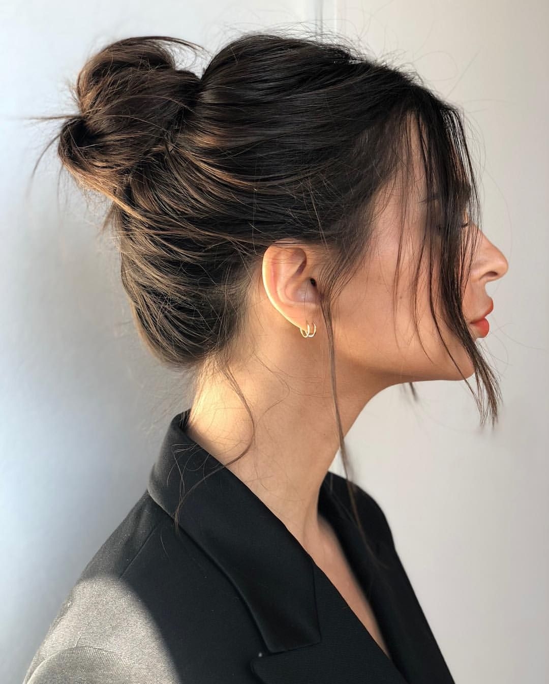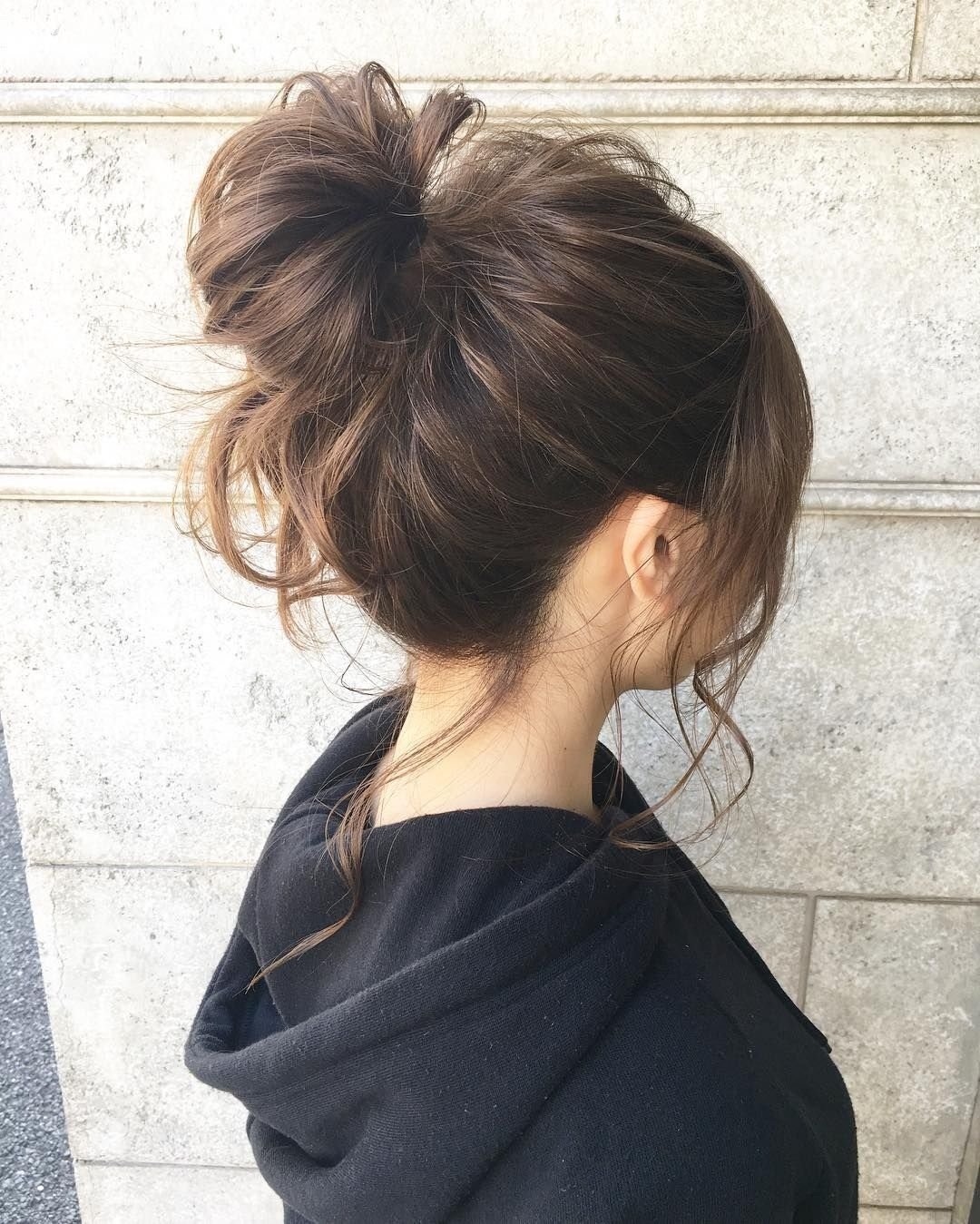 Небрежный пучок на средние темные волосы