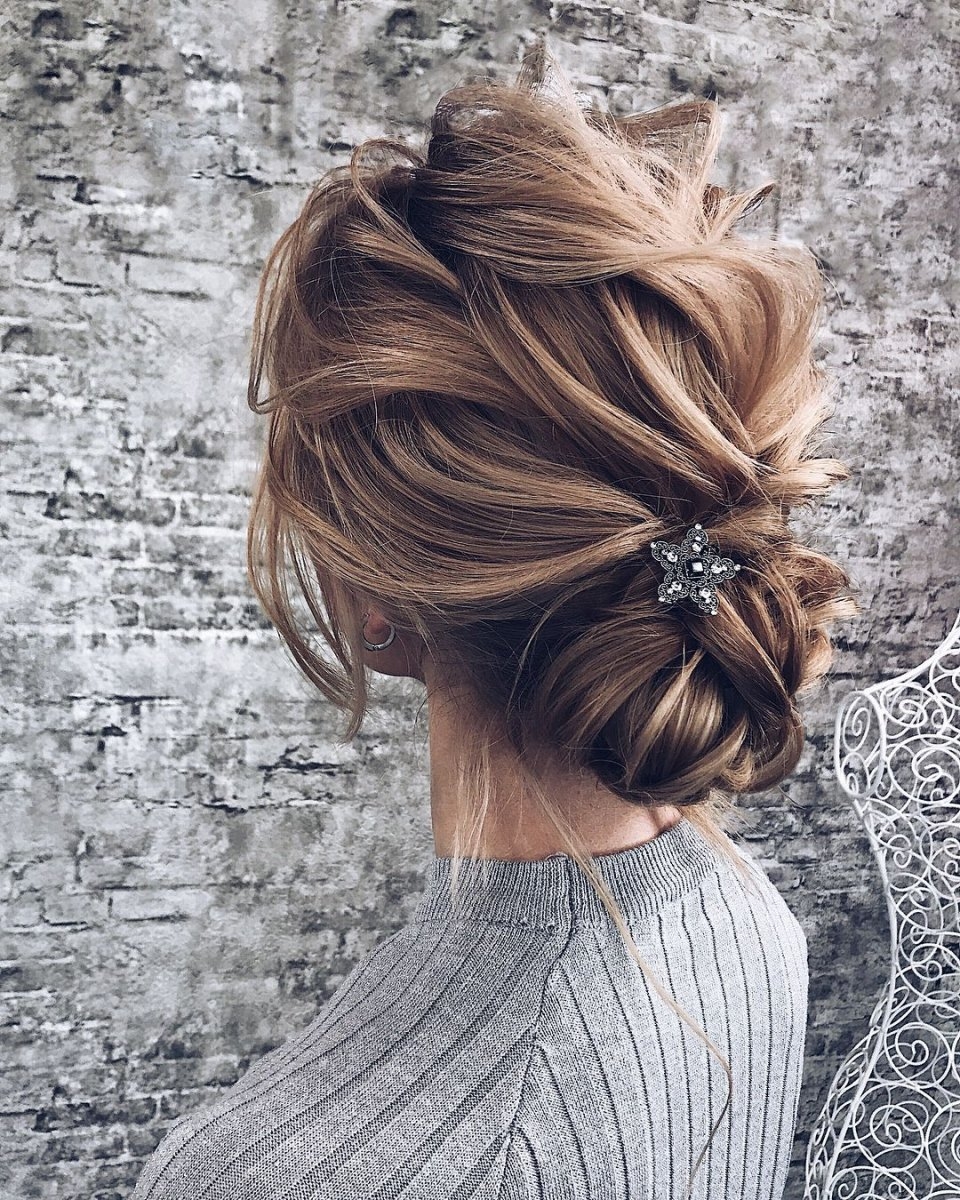 Растрепанный пучок на длинные волосы