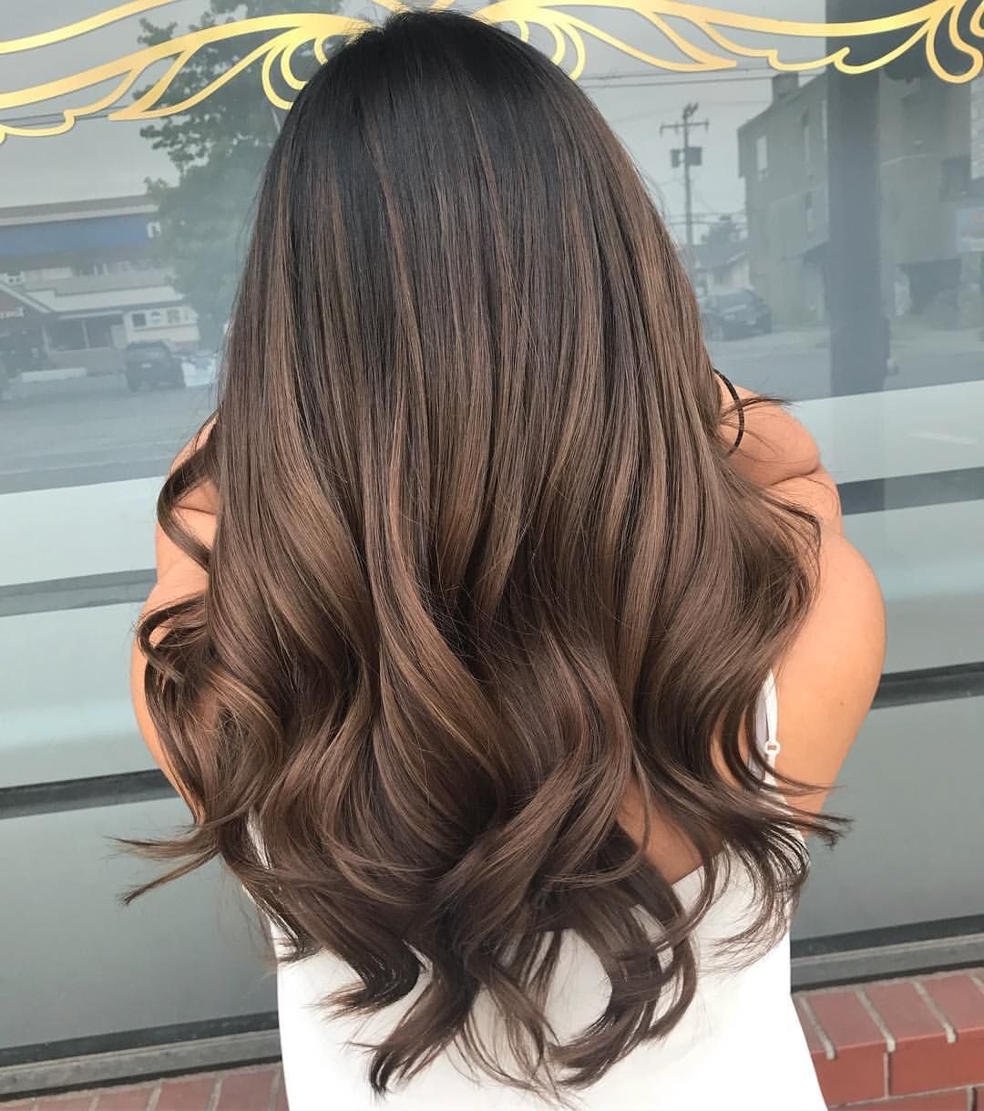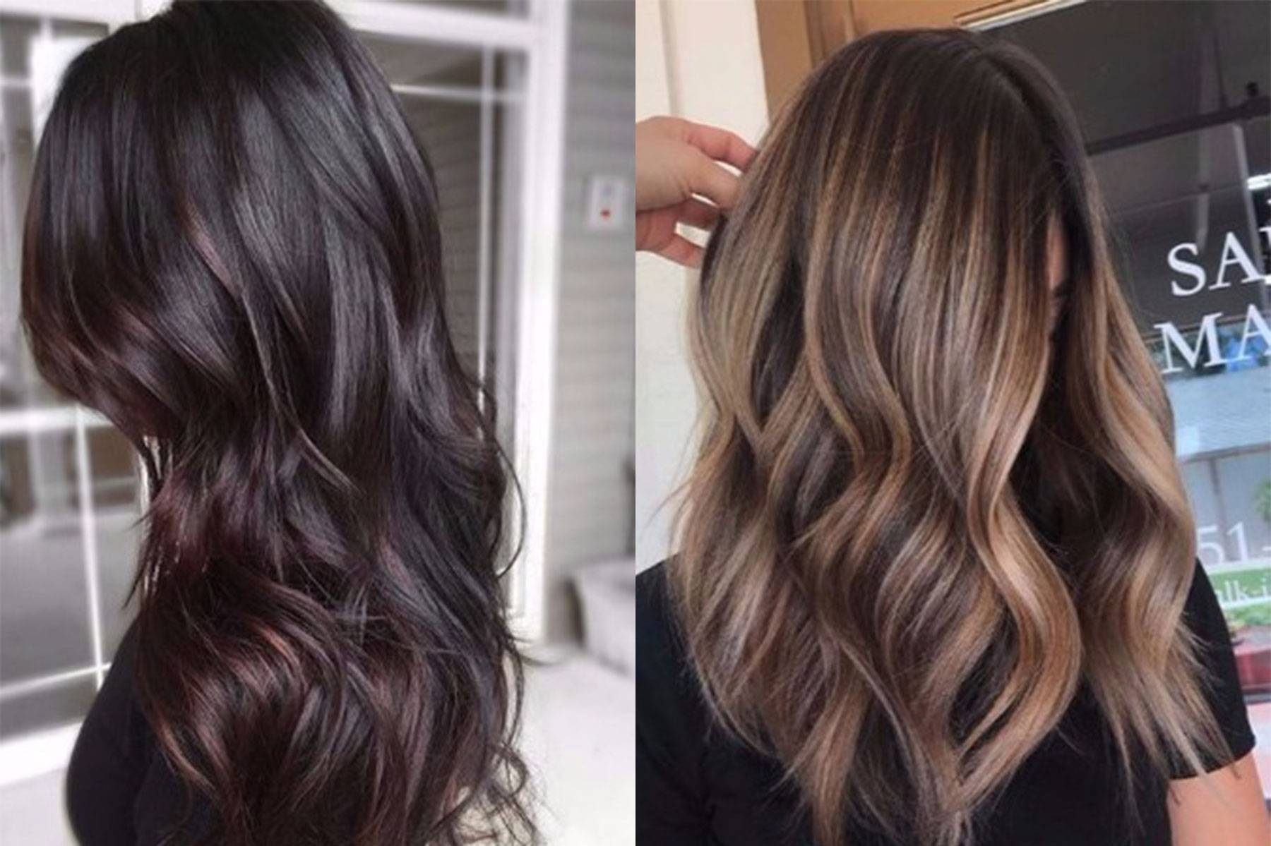 Балаяж окрашивание на темные прямые волосы