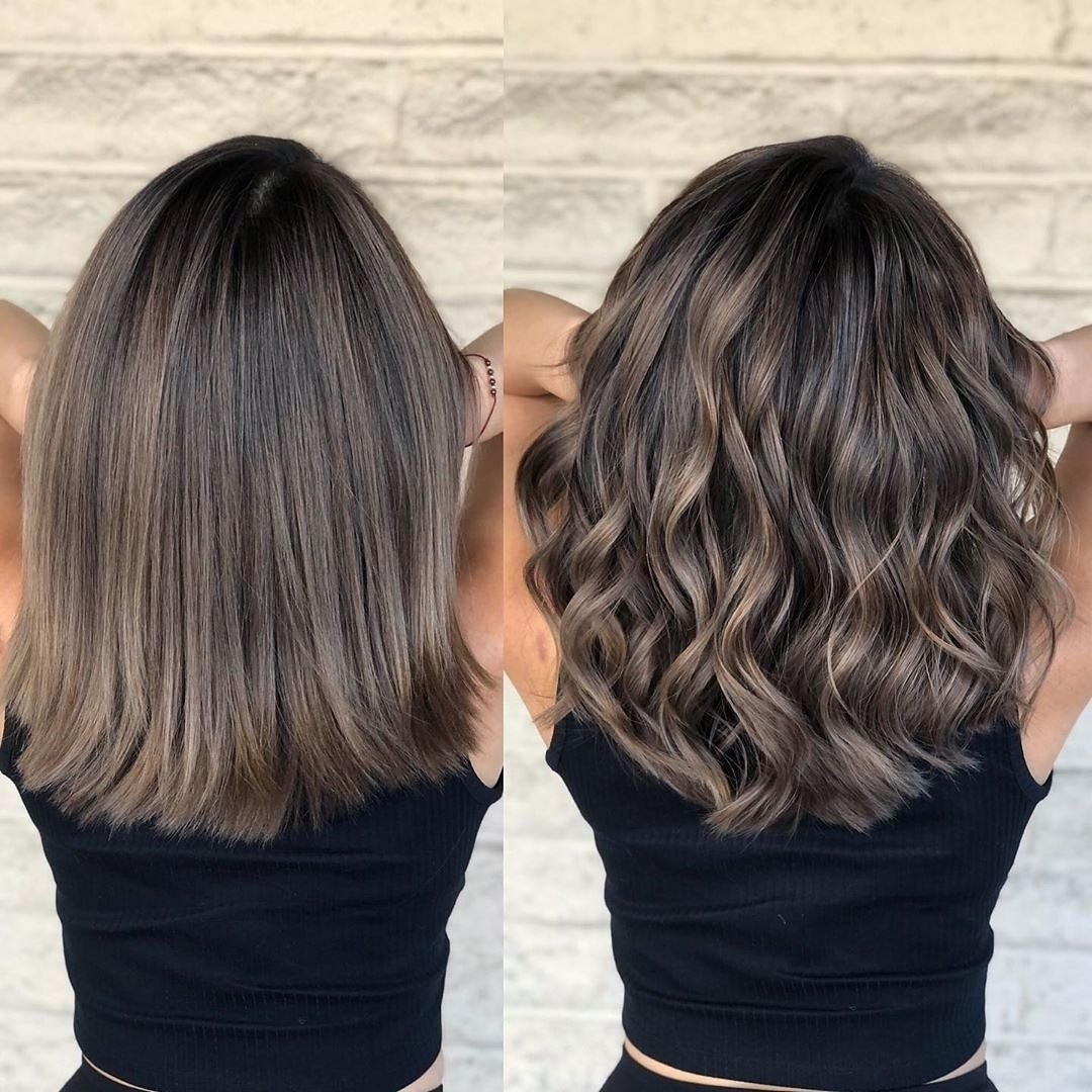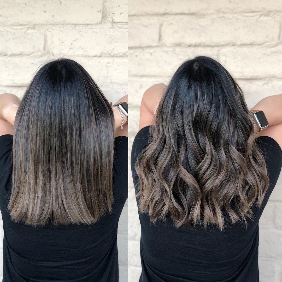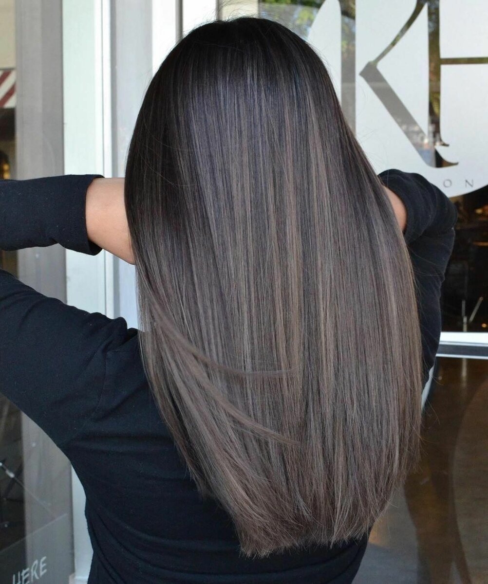 Пепельный балаяж на темные волосы