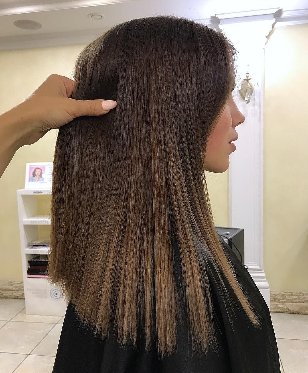 Балаяж на темные прямые волосы