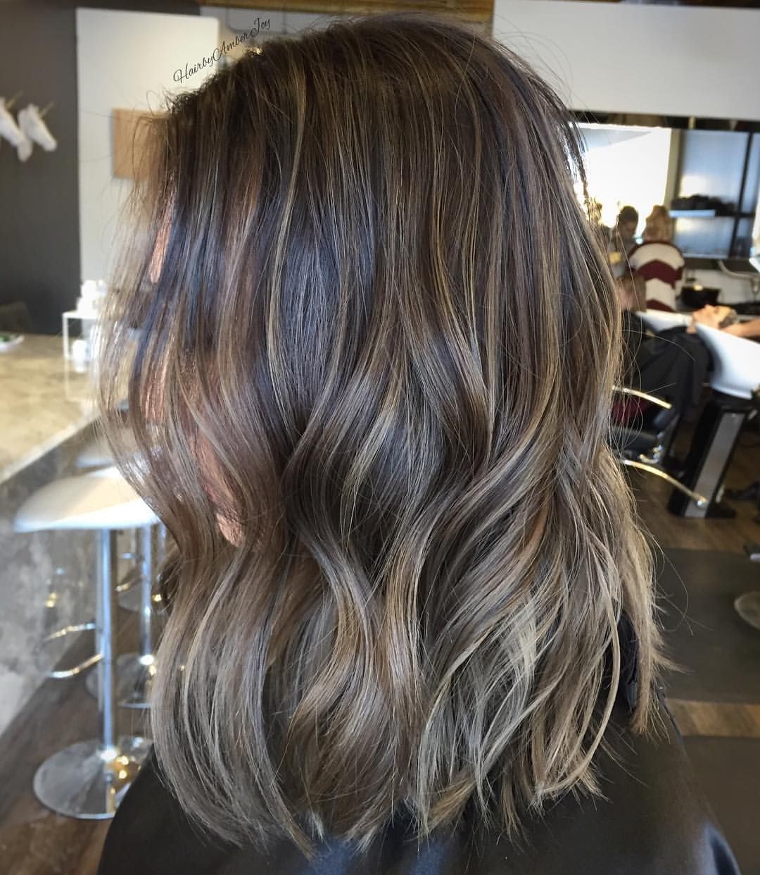 Балаяж на темные средние волосы