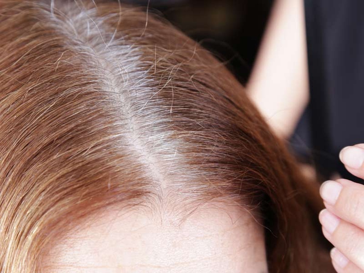 Седые корни на темных волосах