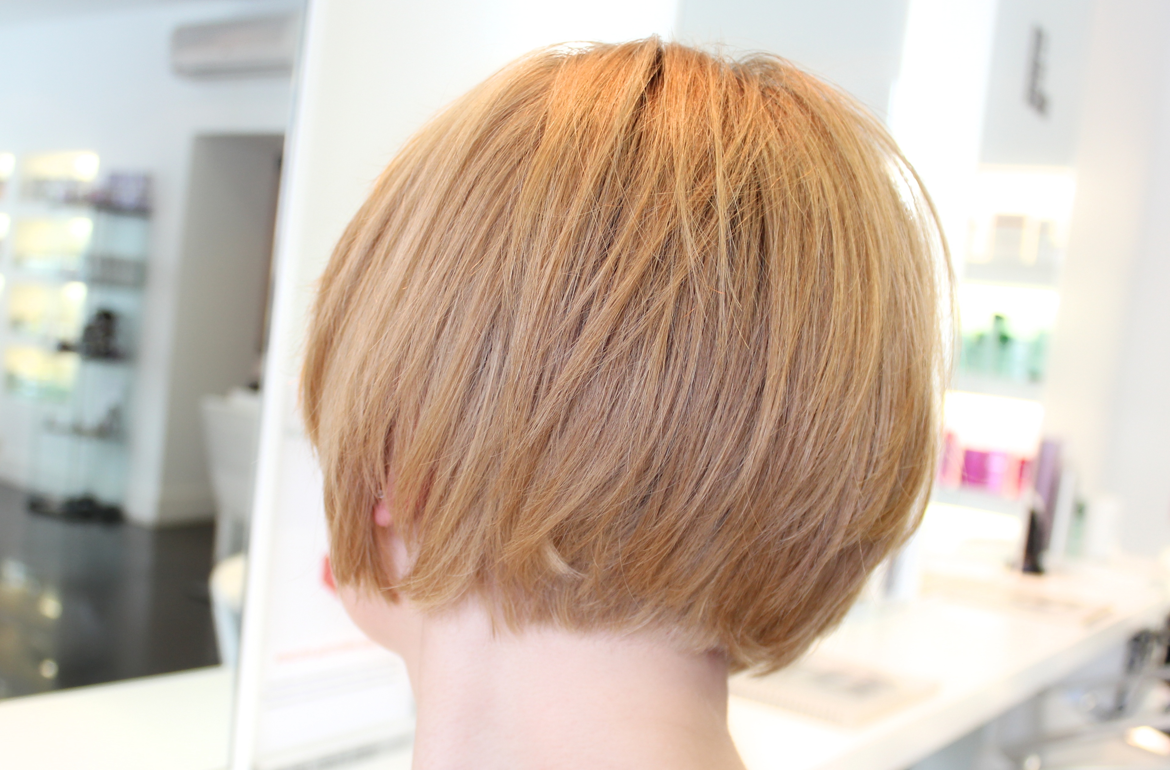Боб с удлинением на короткие волосы и объемом на макушке