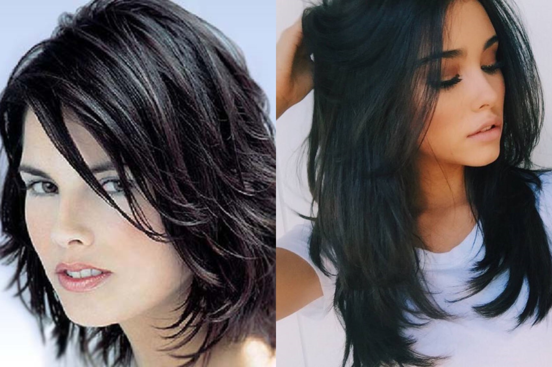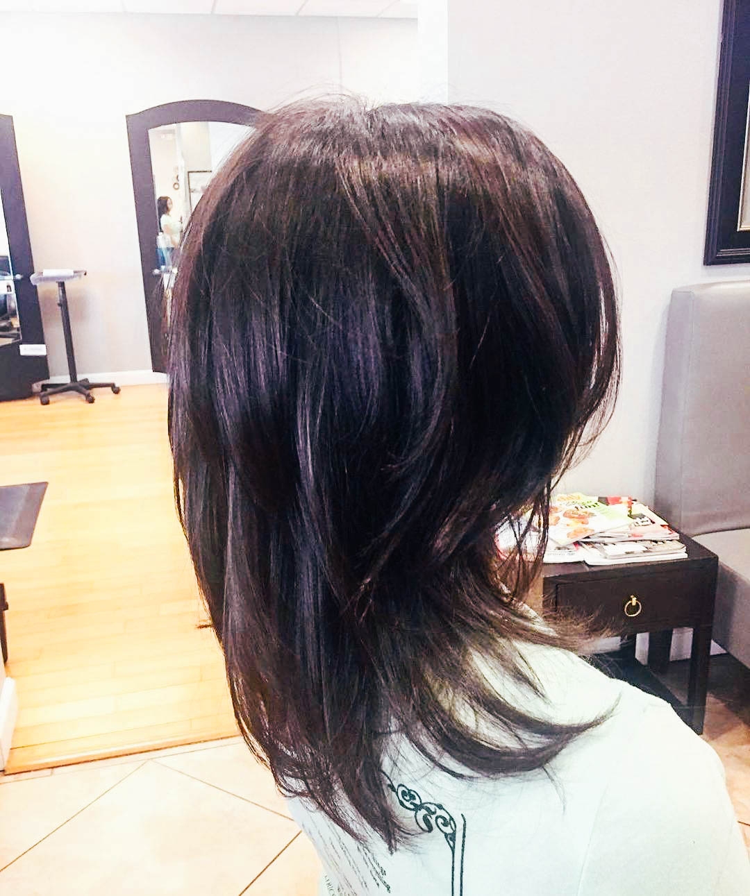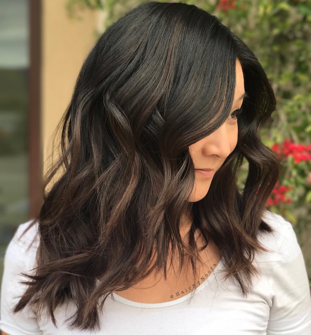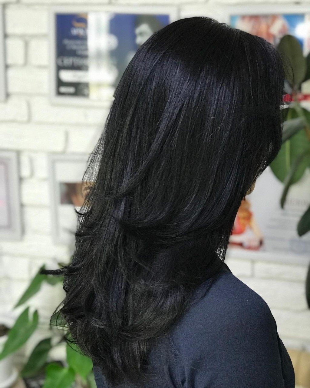 Удлиненный Боб Каскад на средние волосы брюнетки