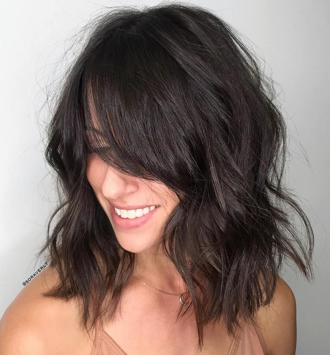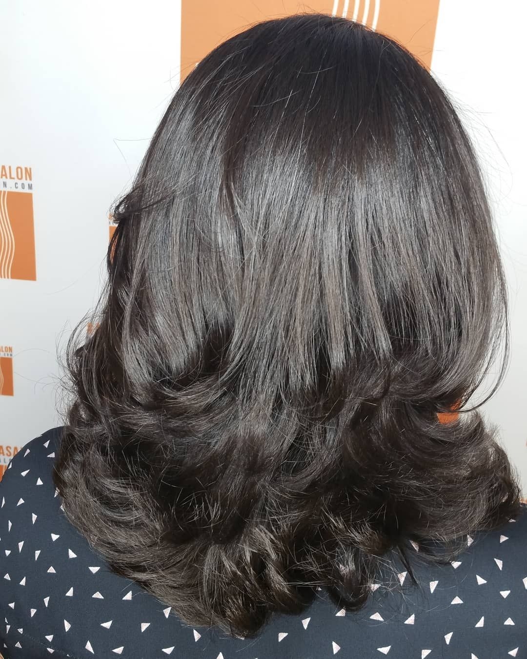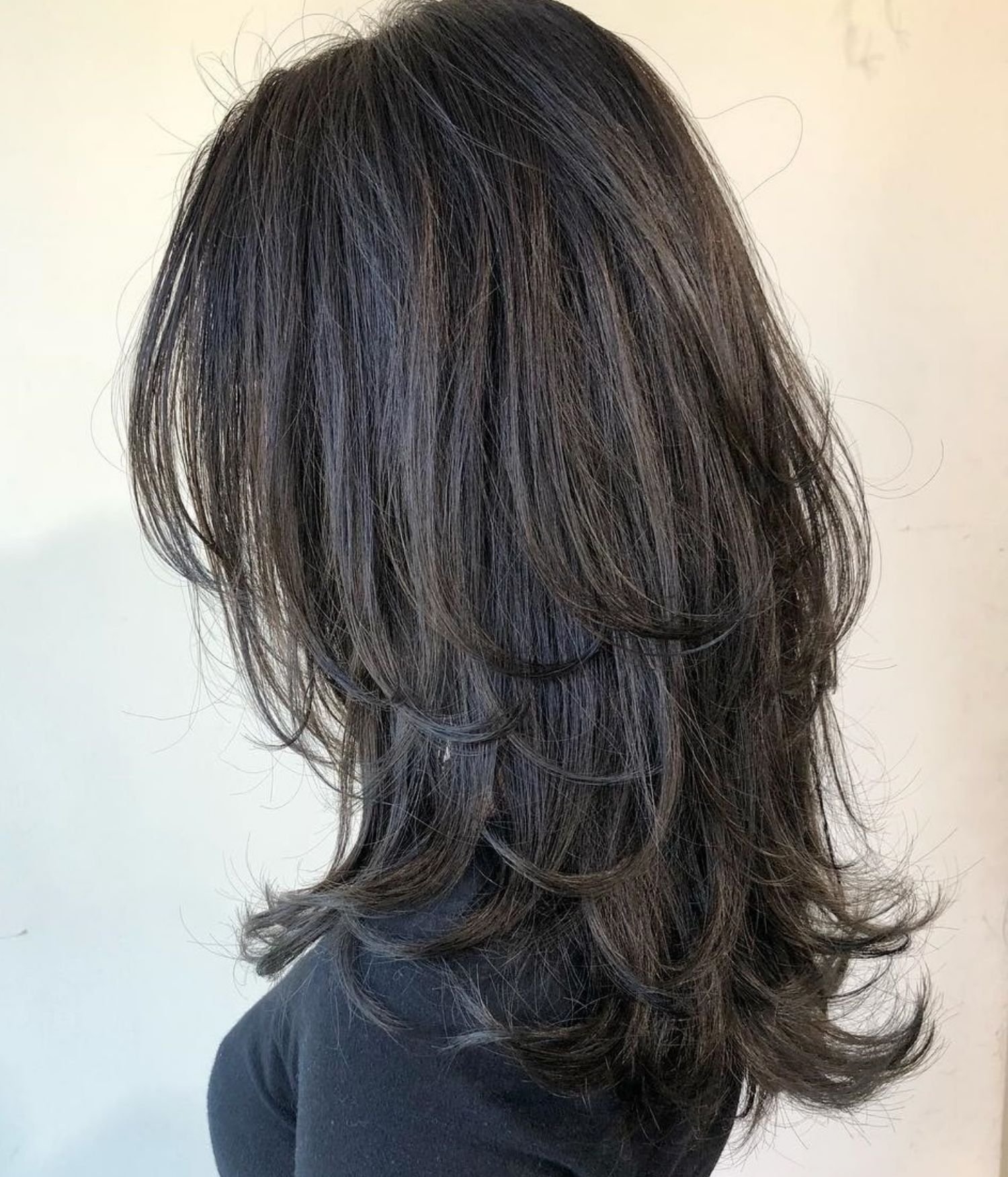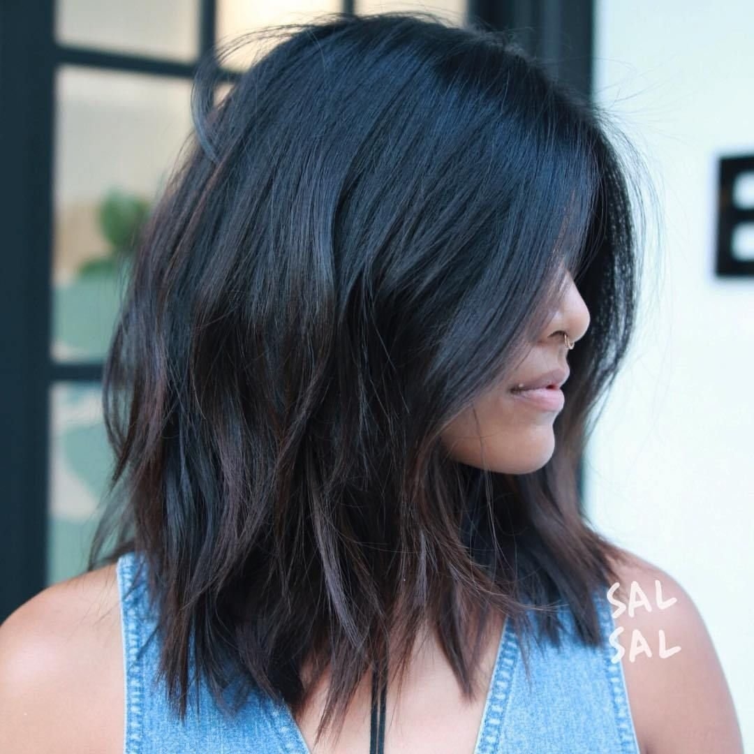 Удлиненный Боб Каскад на средние волосы брюнетки