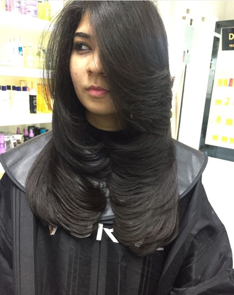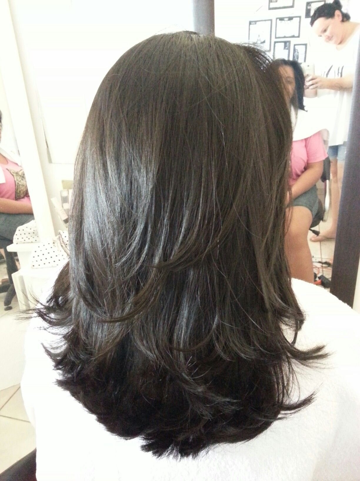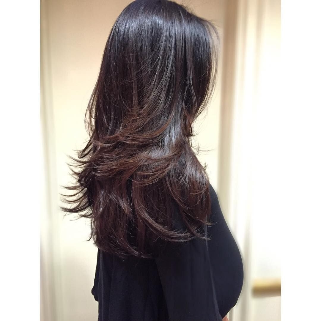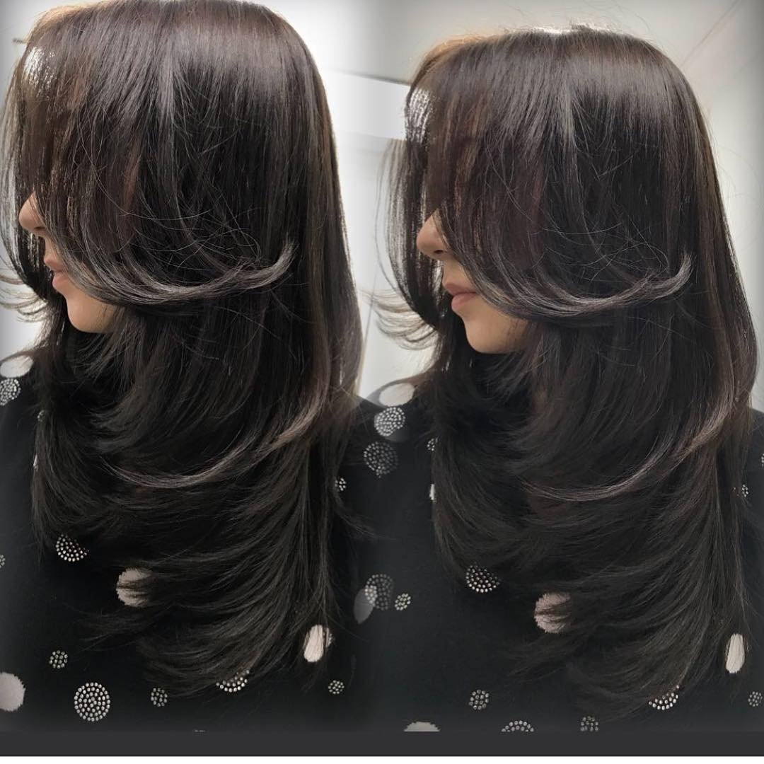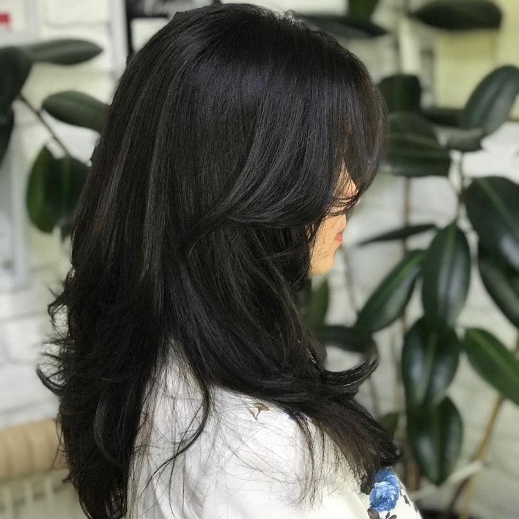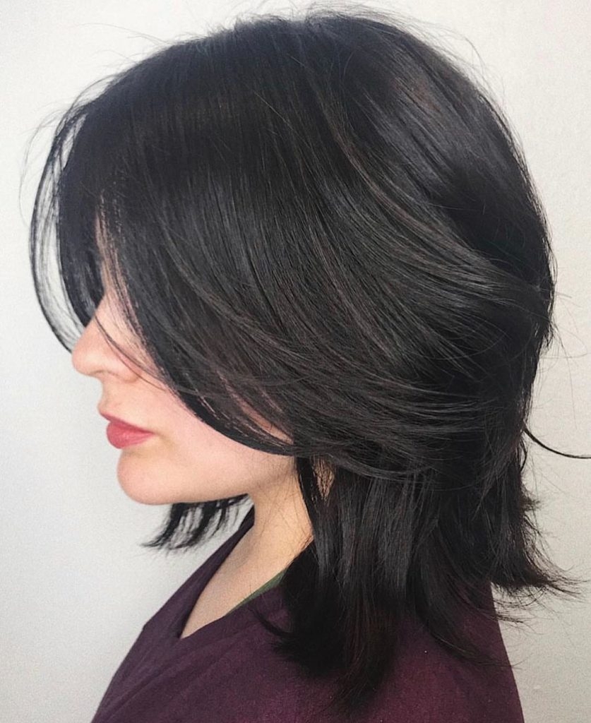 Удлиненный Боб Каскад на средние волосы брюнетки