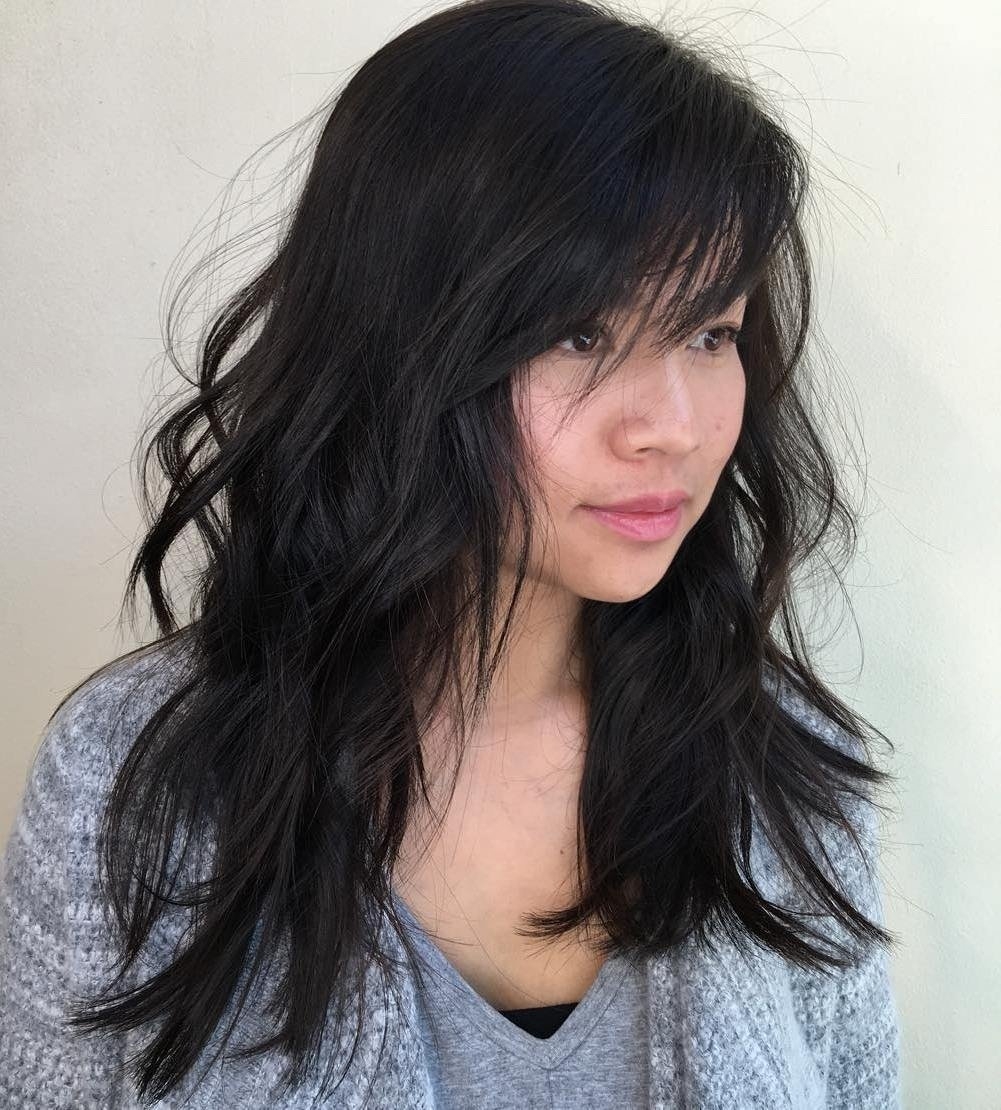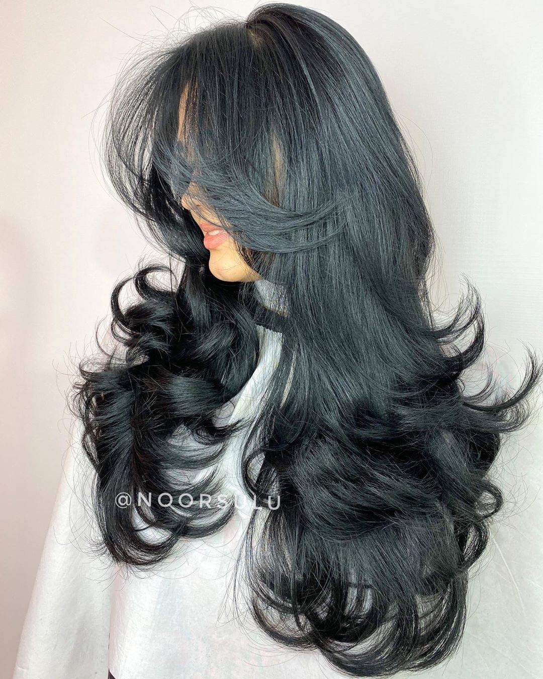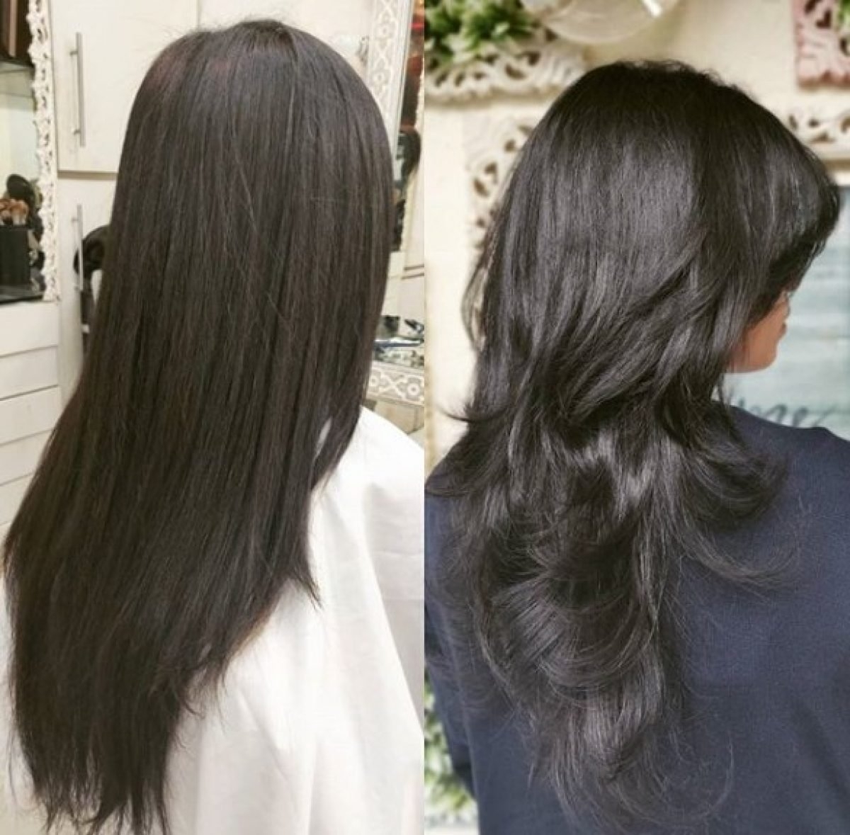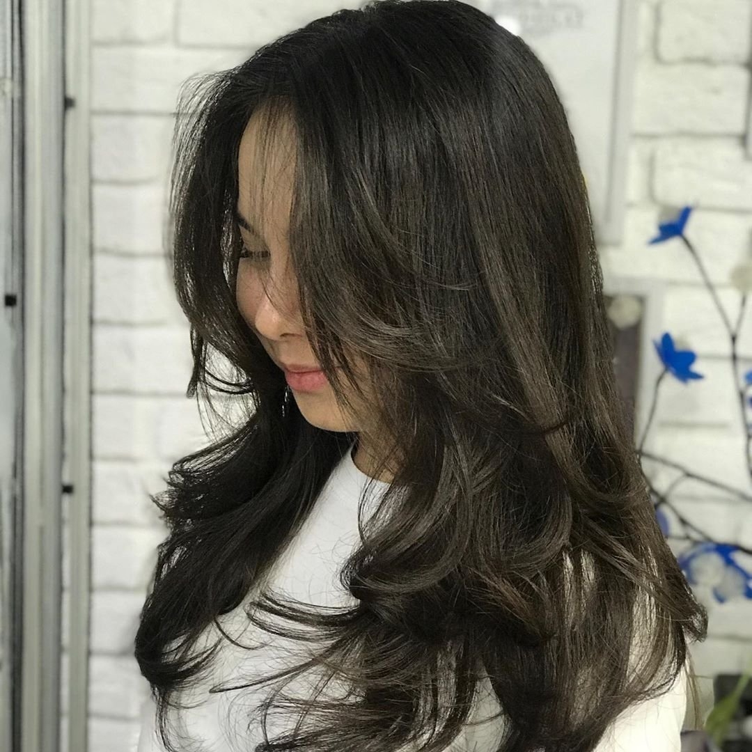 Удлиненный Боб Каскад на средние волосы брюнетки