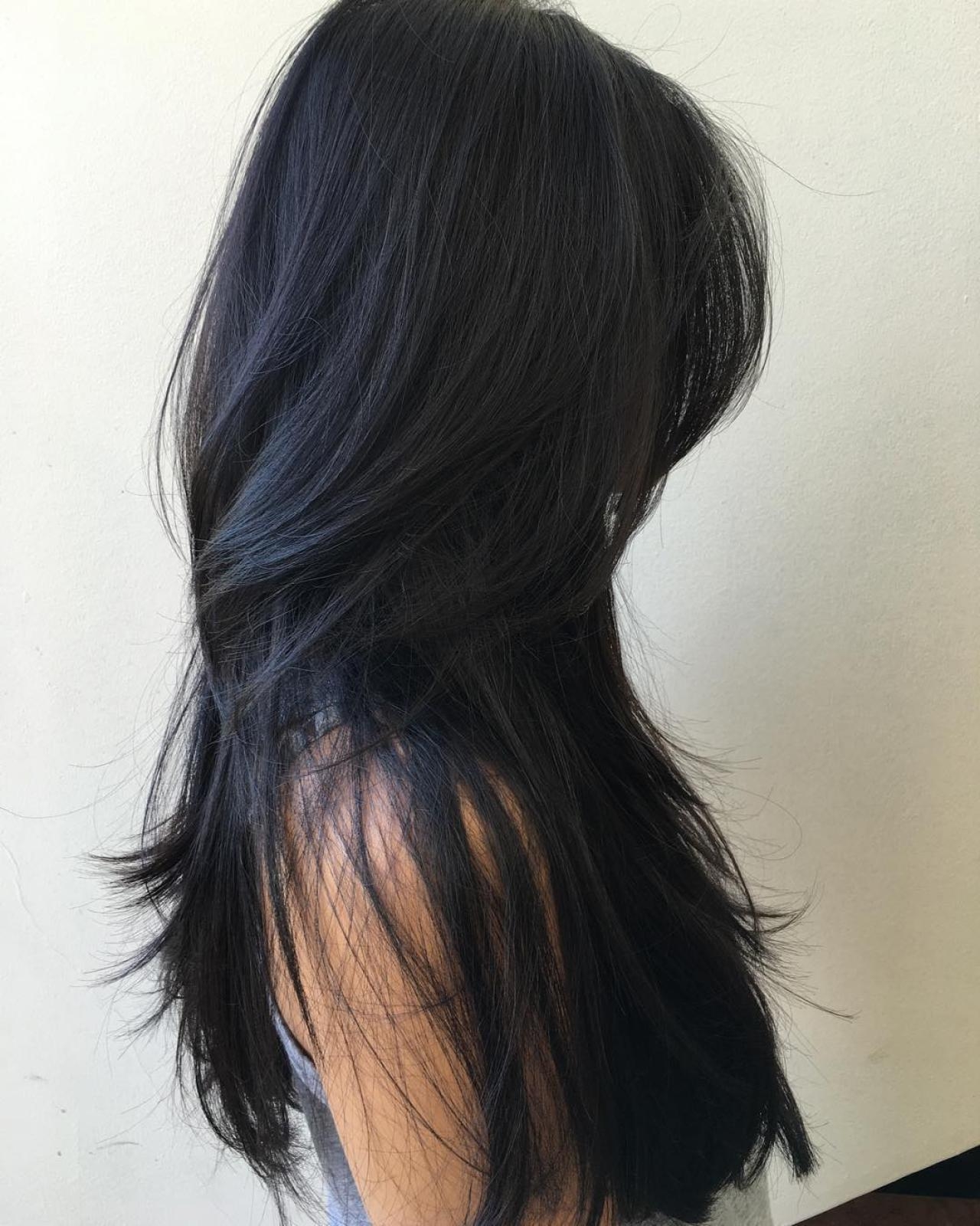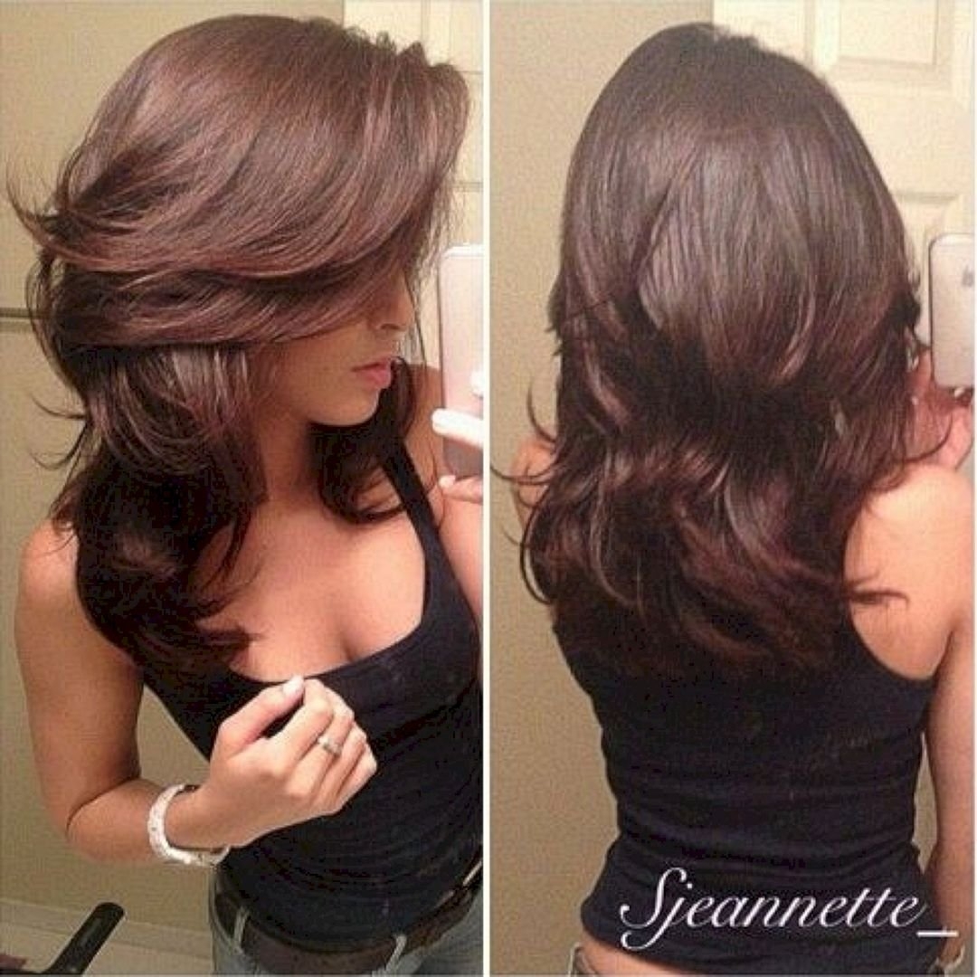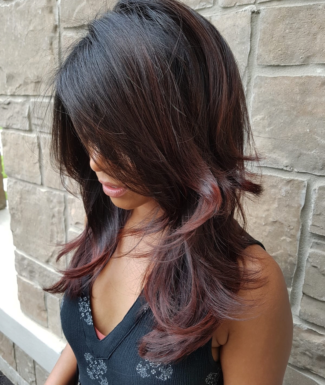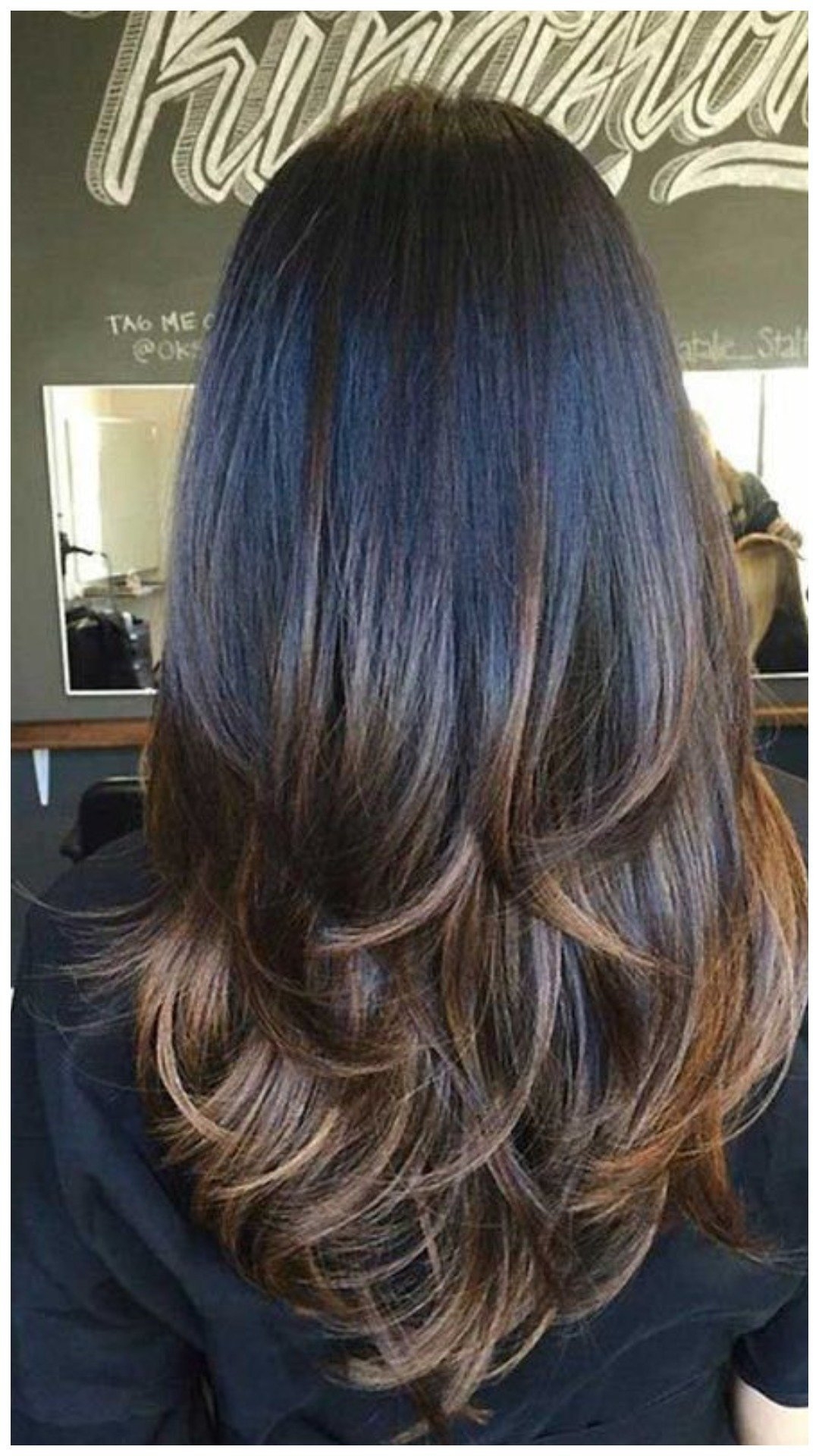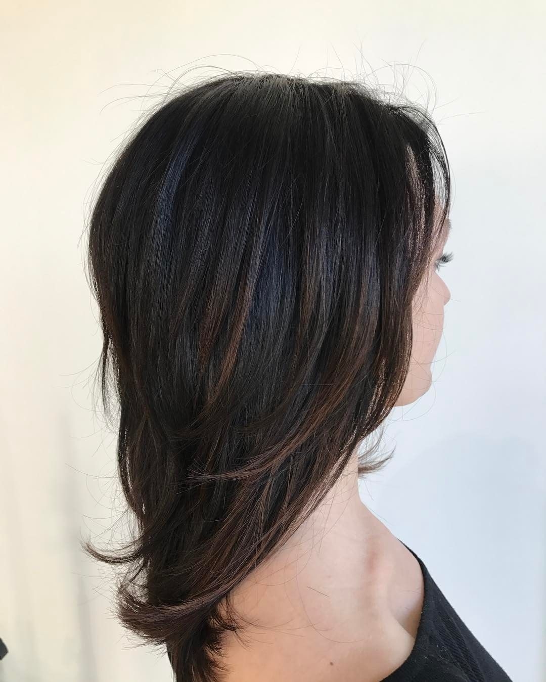 Каскад со сложным окрашиванием брюнетки на средние волосы