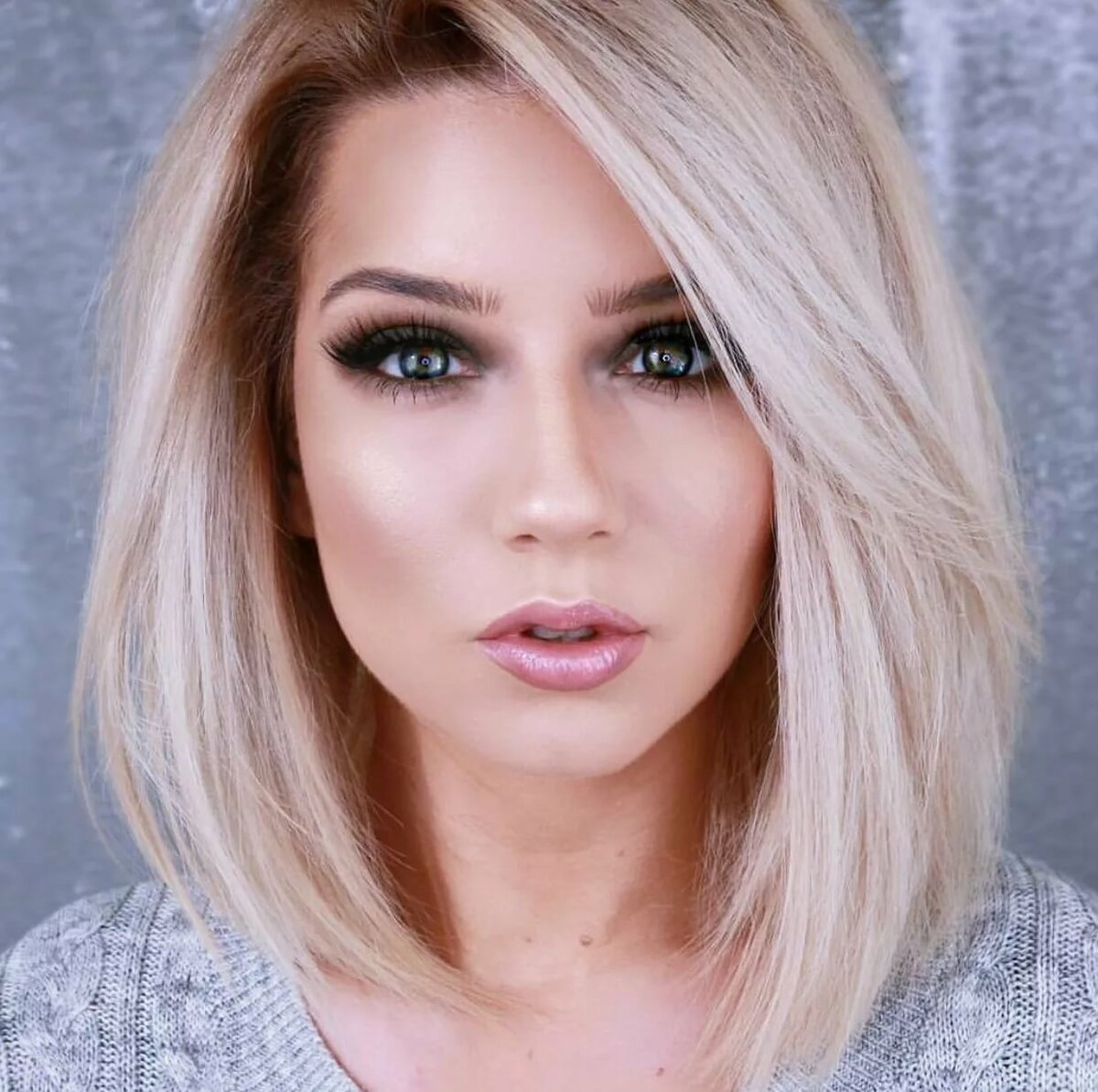 Длинное каре тотал блонд