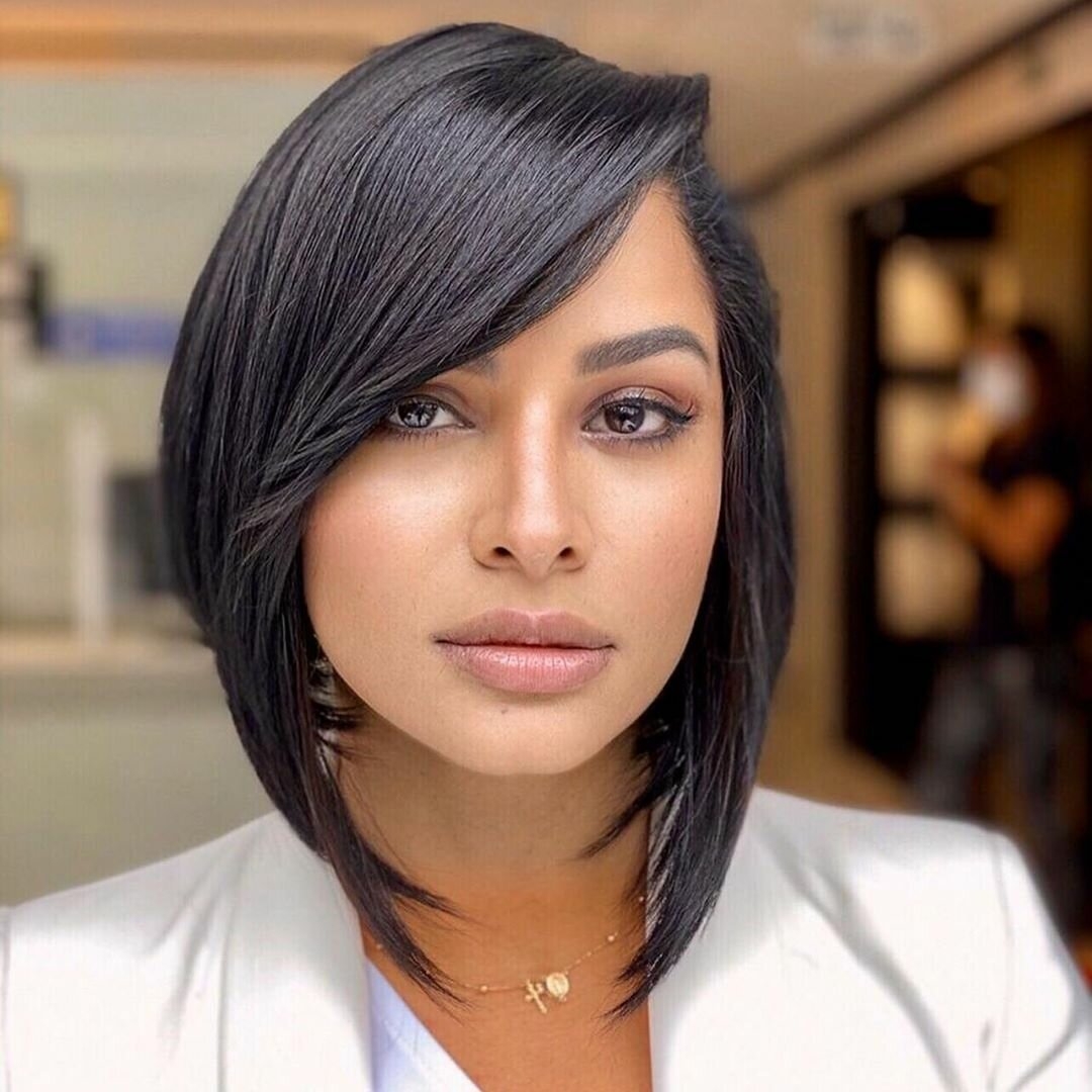 Каре на средние волосы с длинной челкой