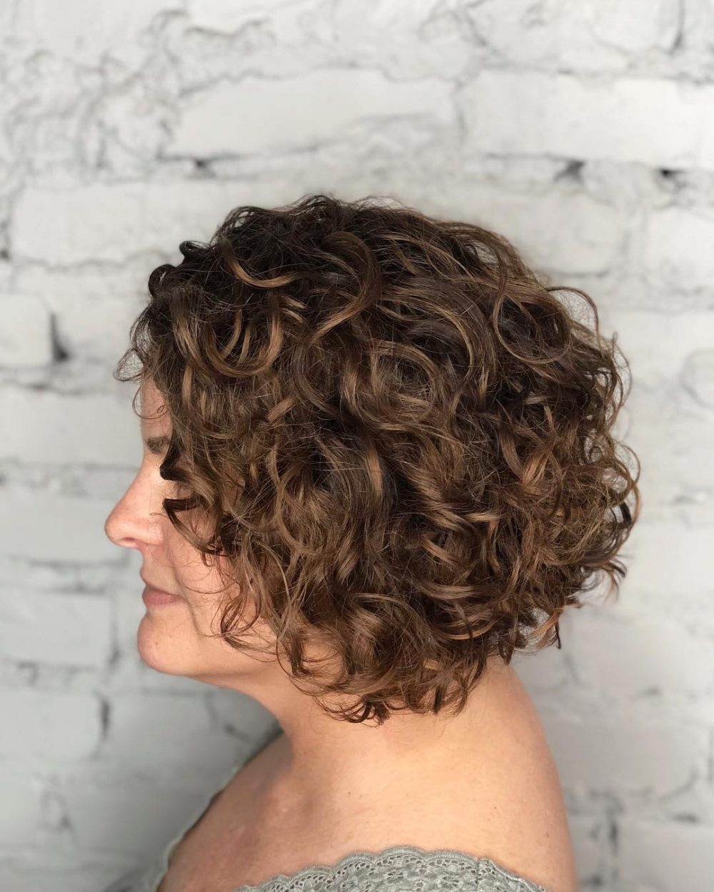 Градуированный Боб на вьющиеся волосы средней длины