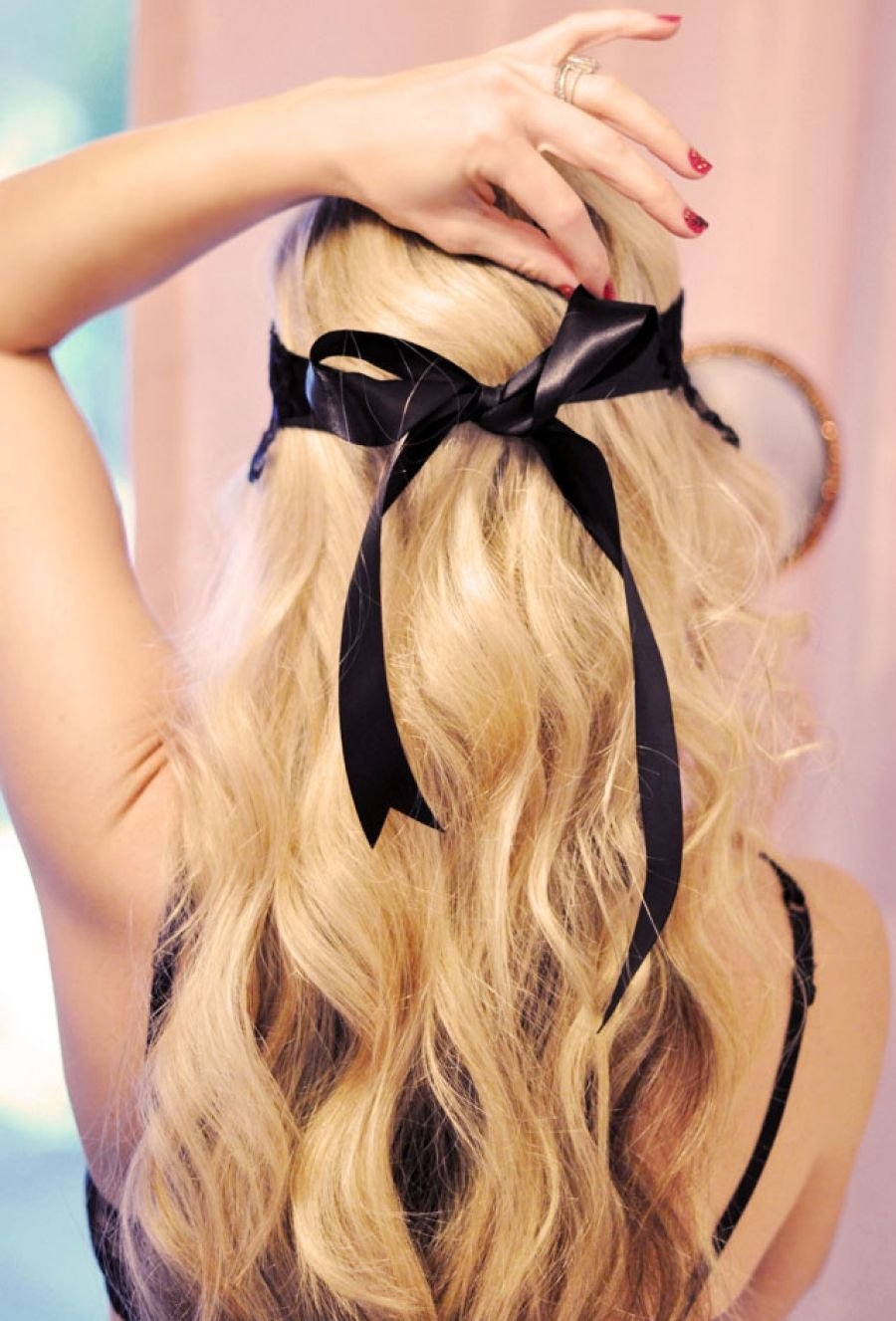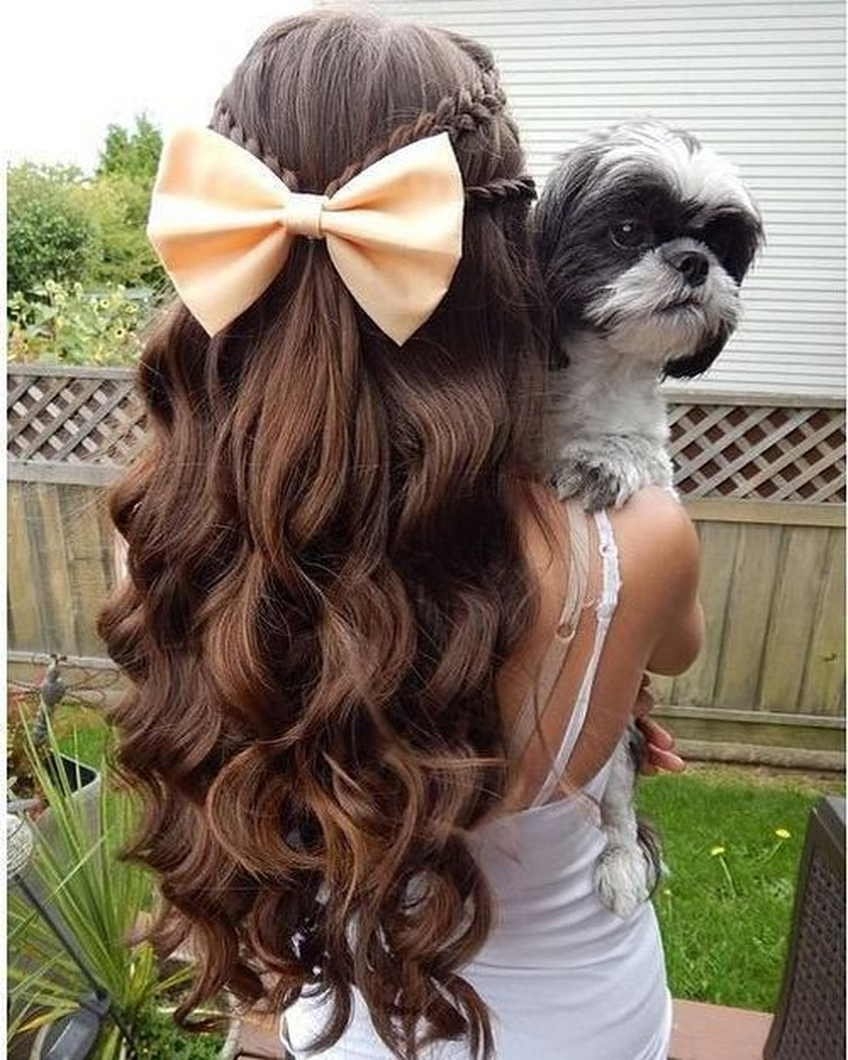 Прическа на длинные волосы с бантом