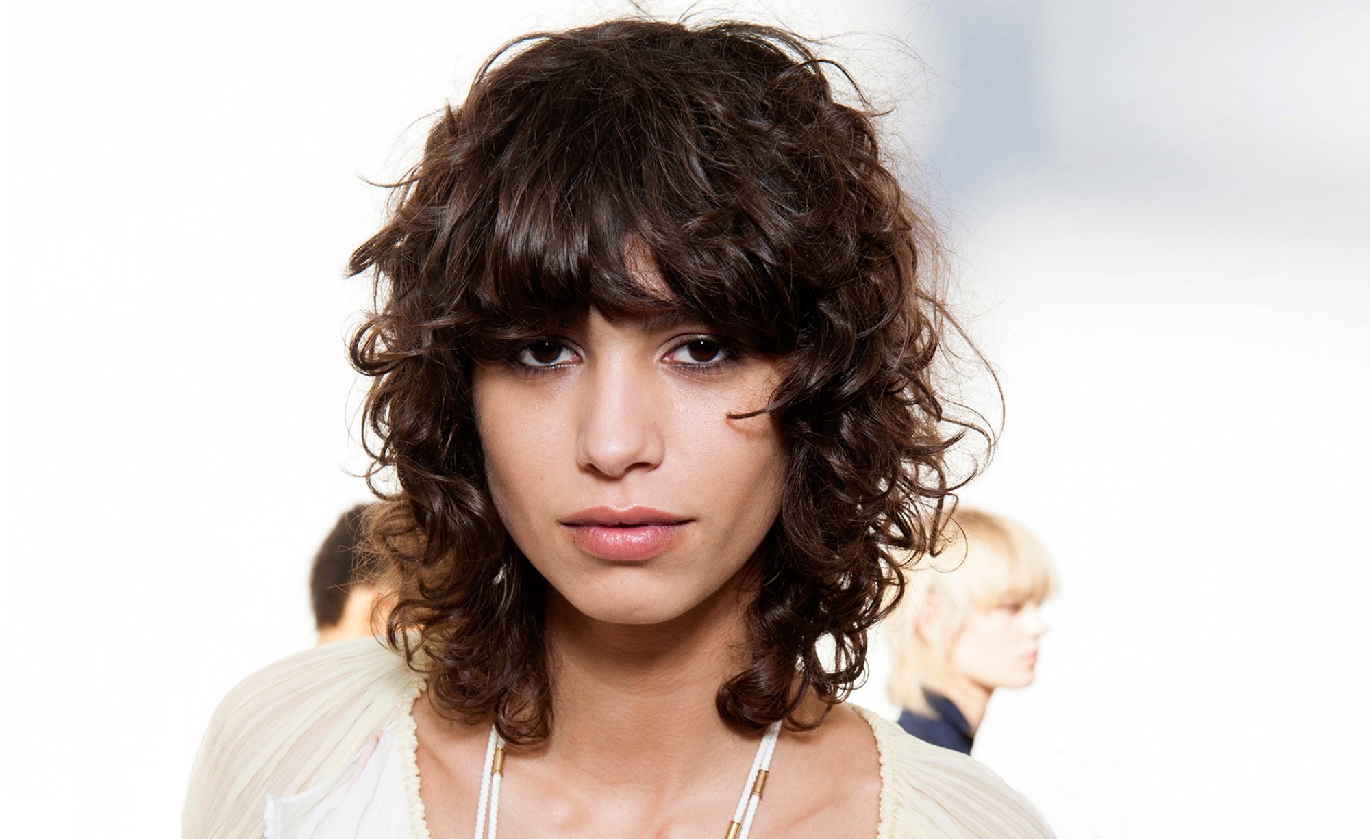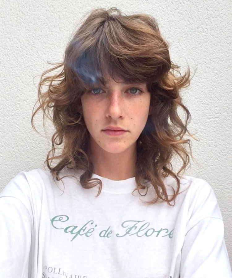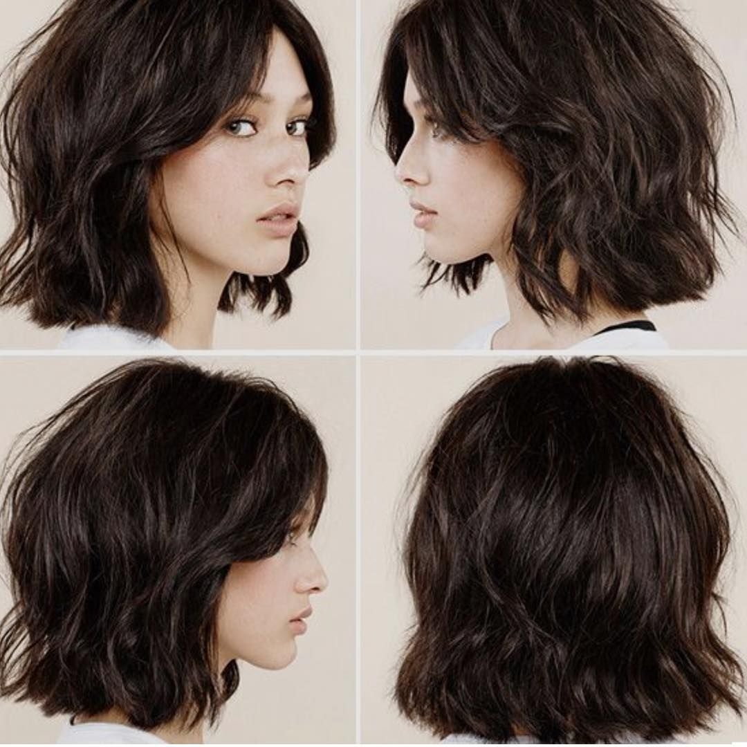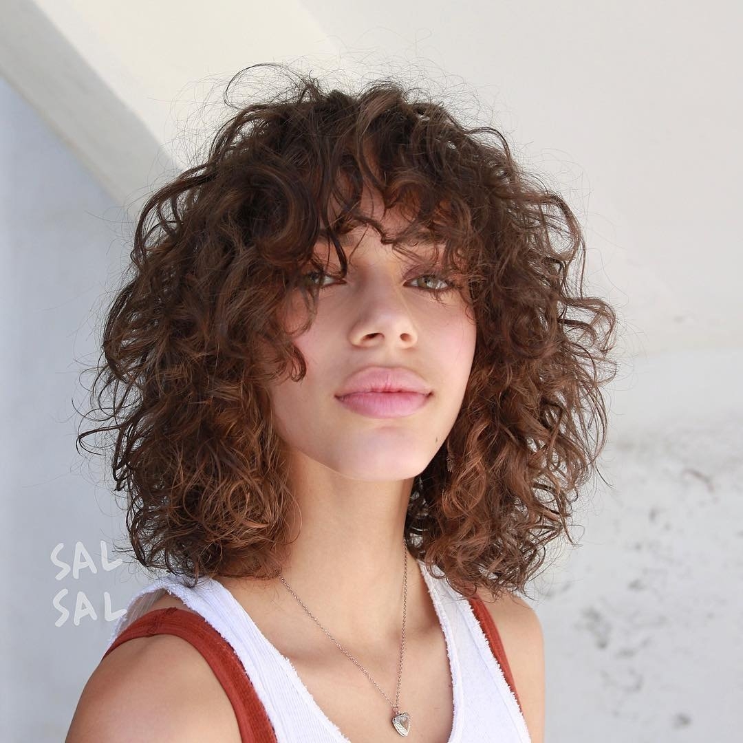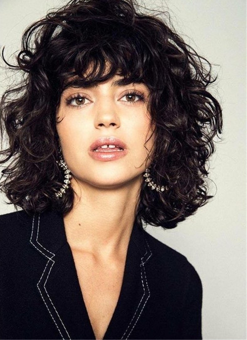 Стрижка Каскад на средние волосы с челкой 2022 на волнистые волосы