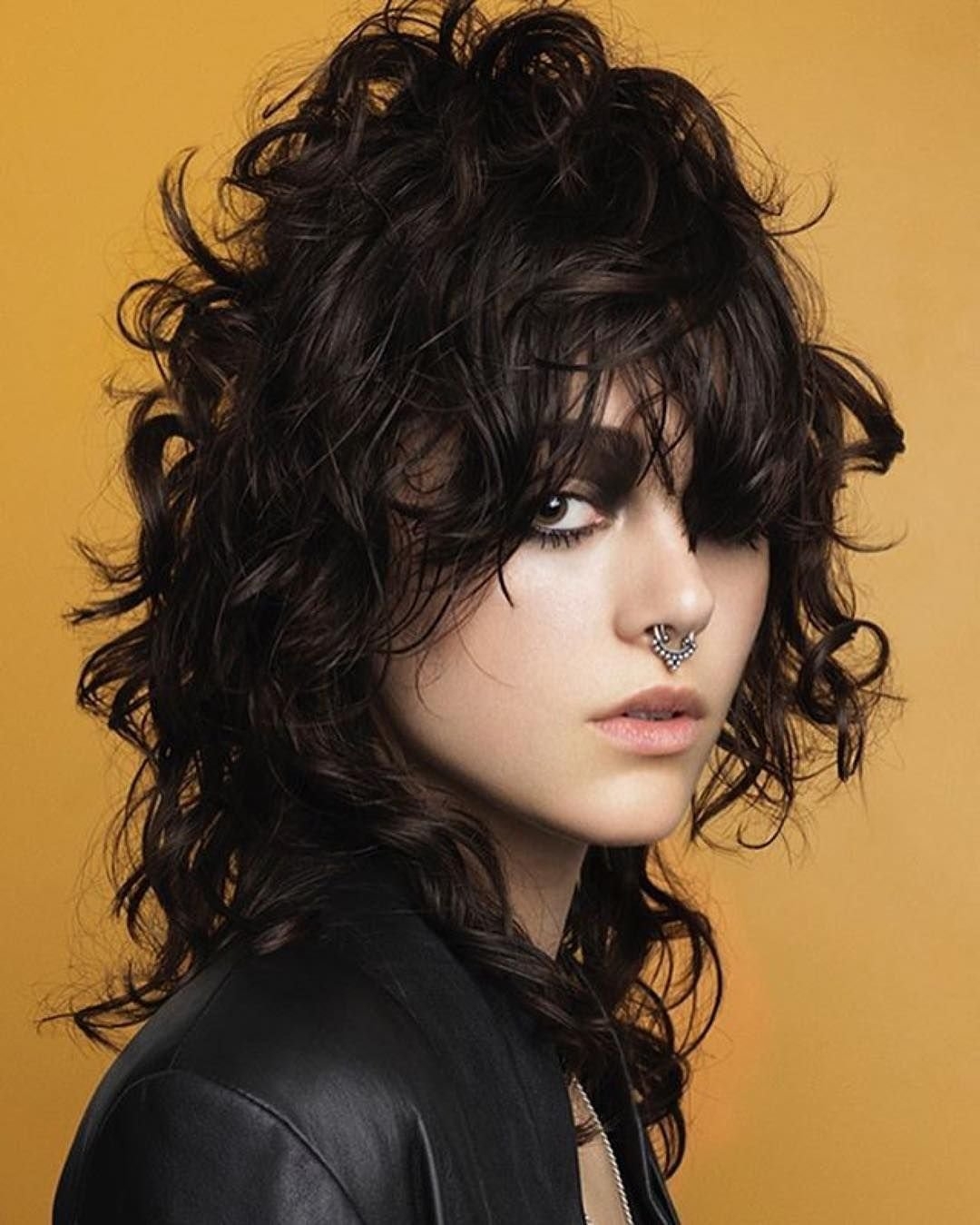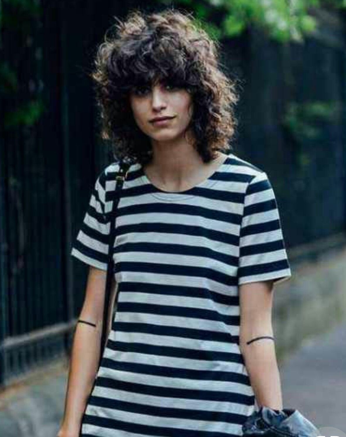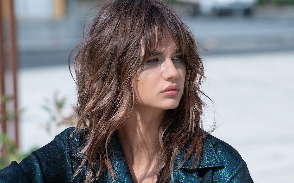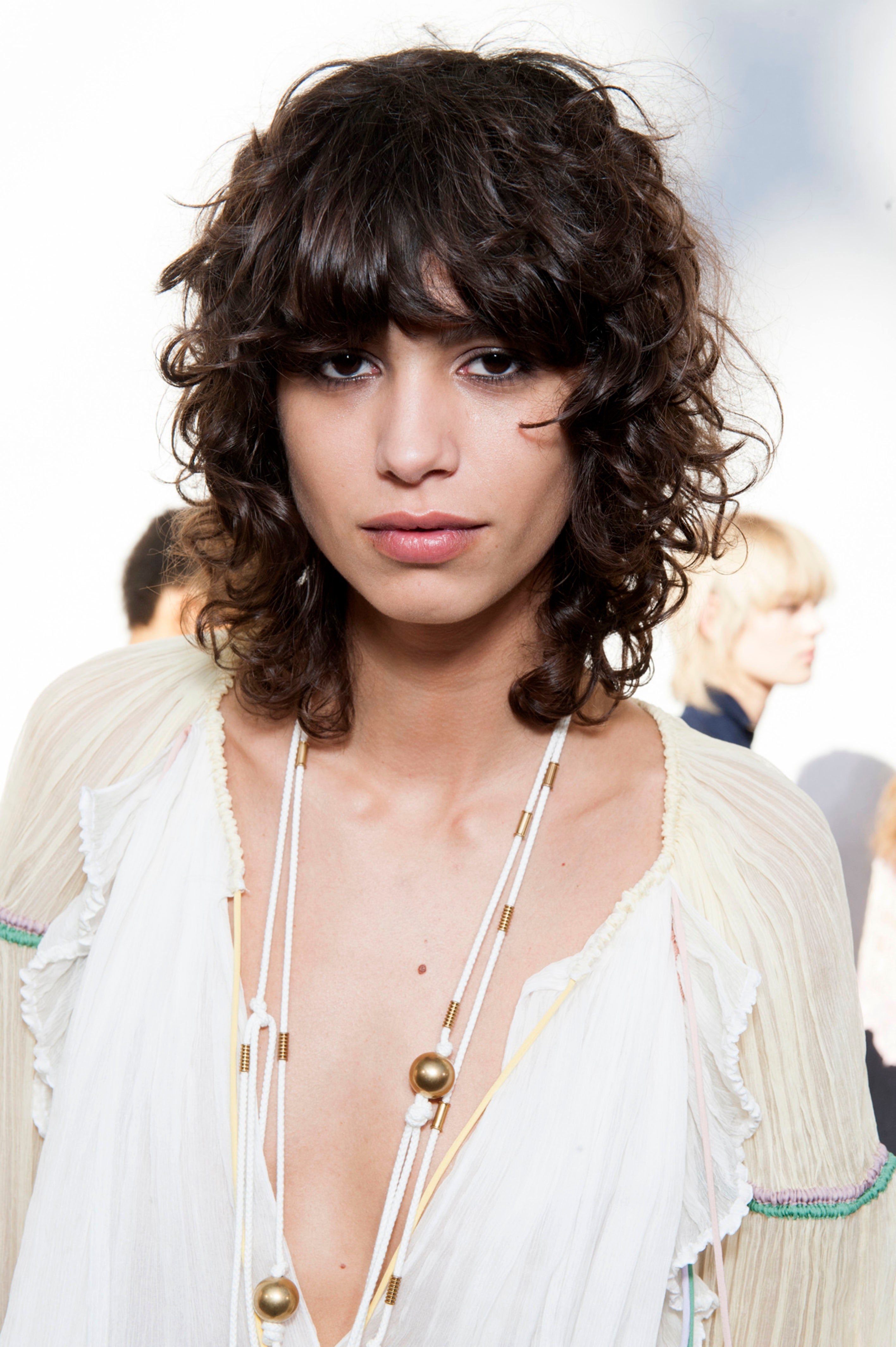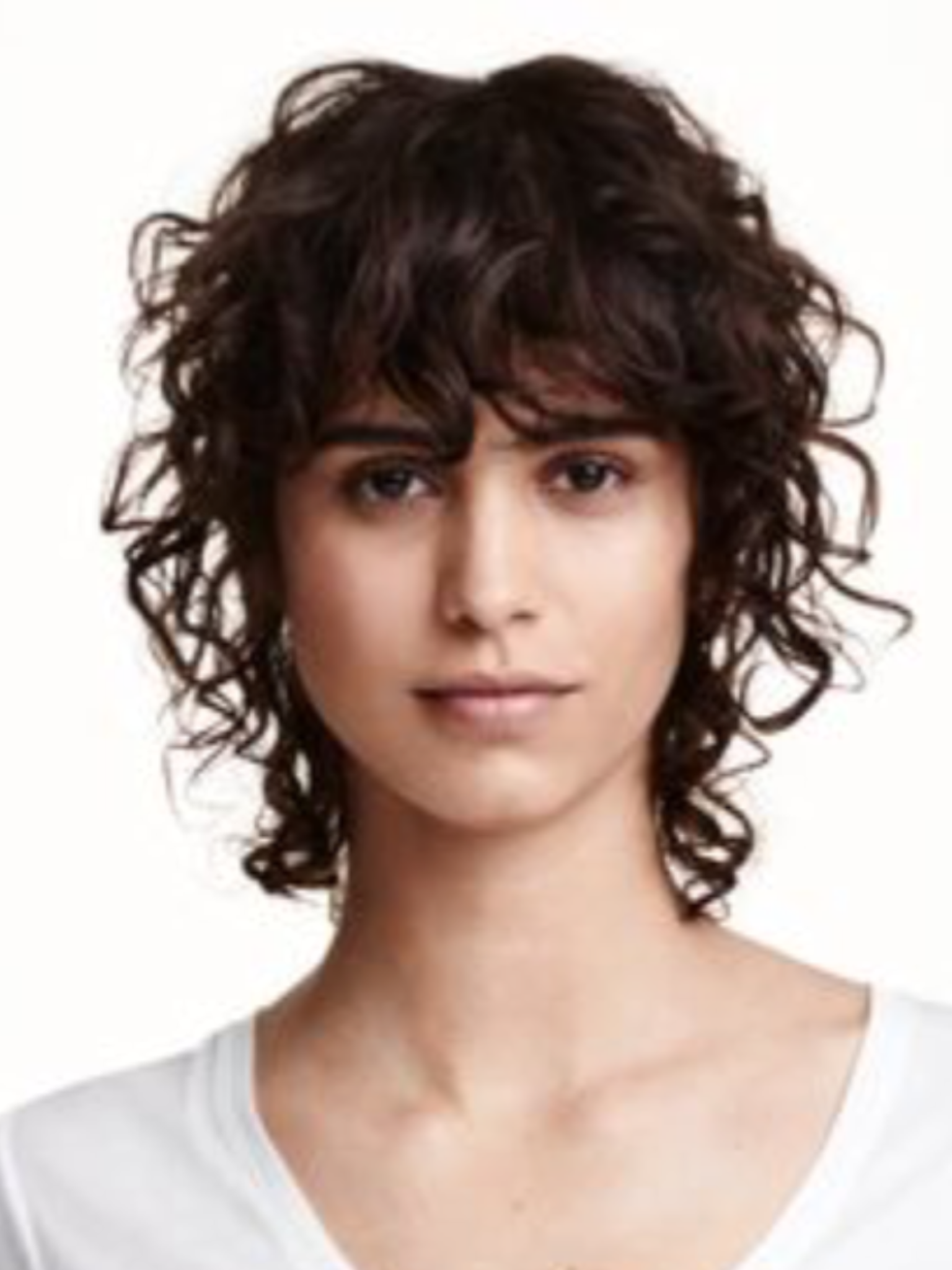 Стрижка Каскад на средние волосы с челкой 2022 на волнистые волосы