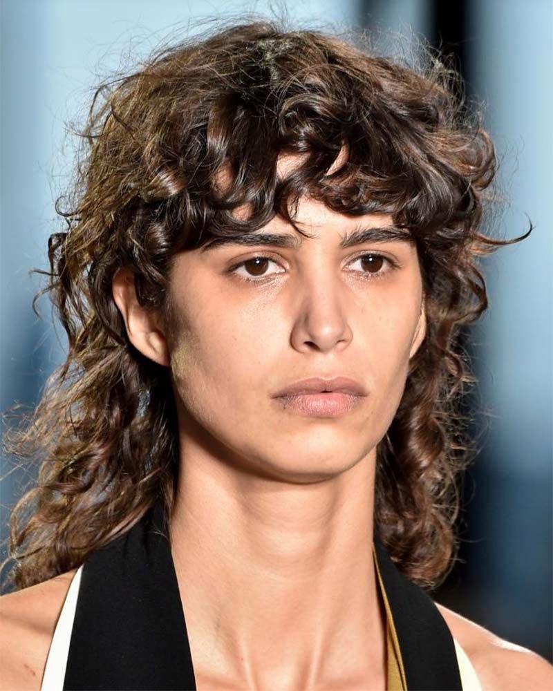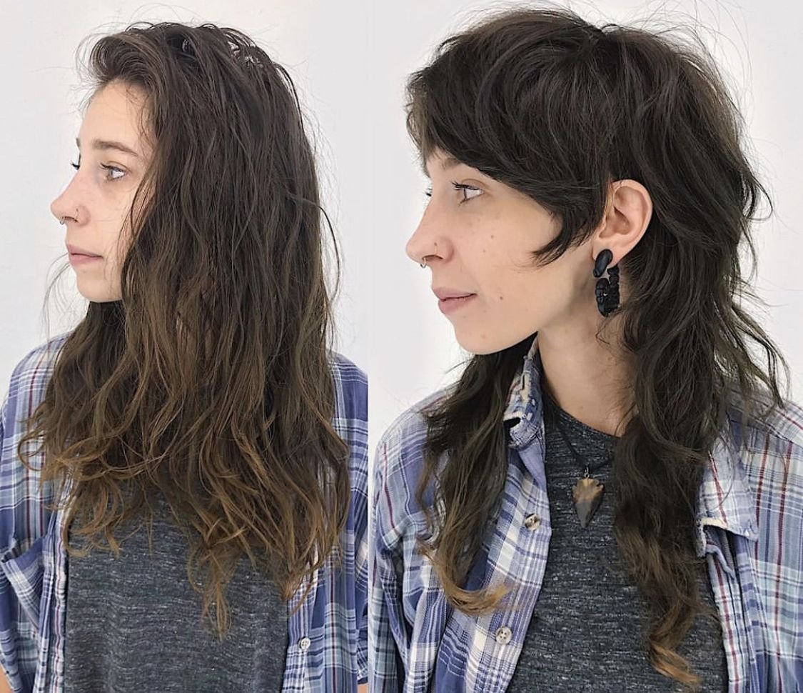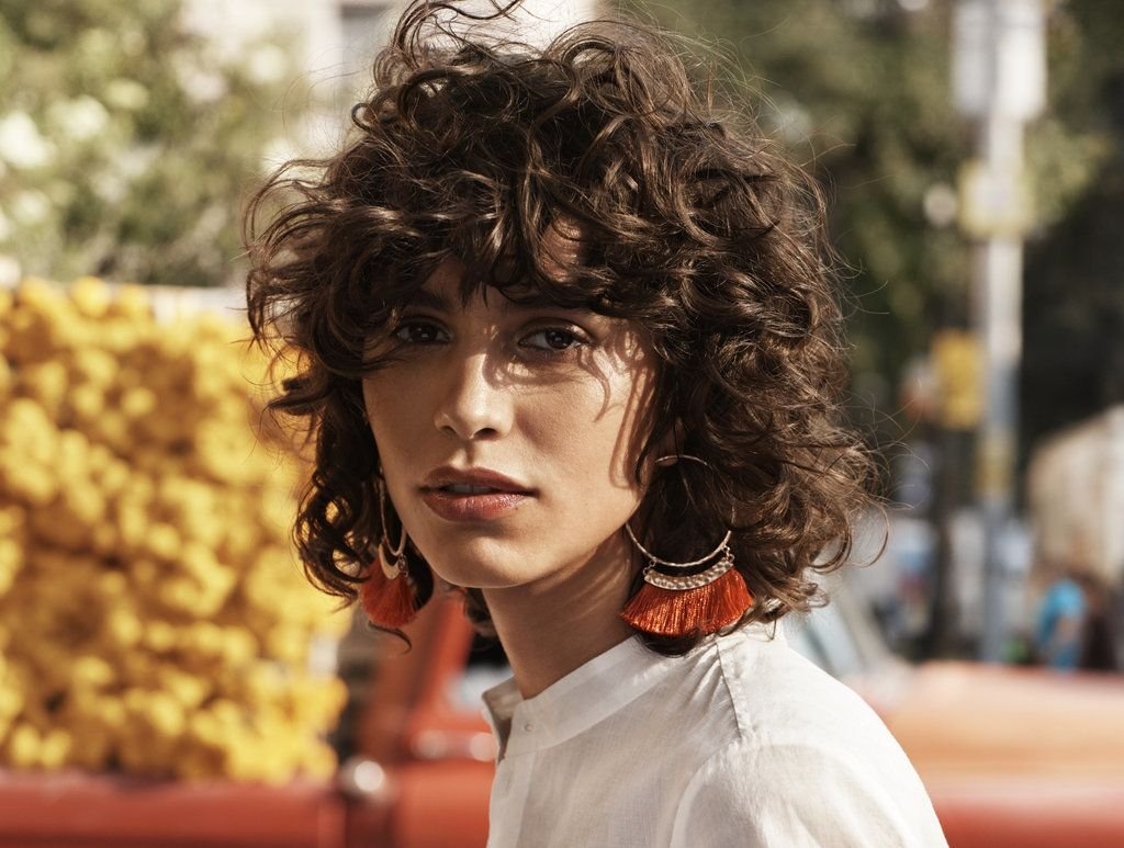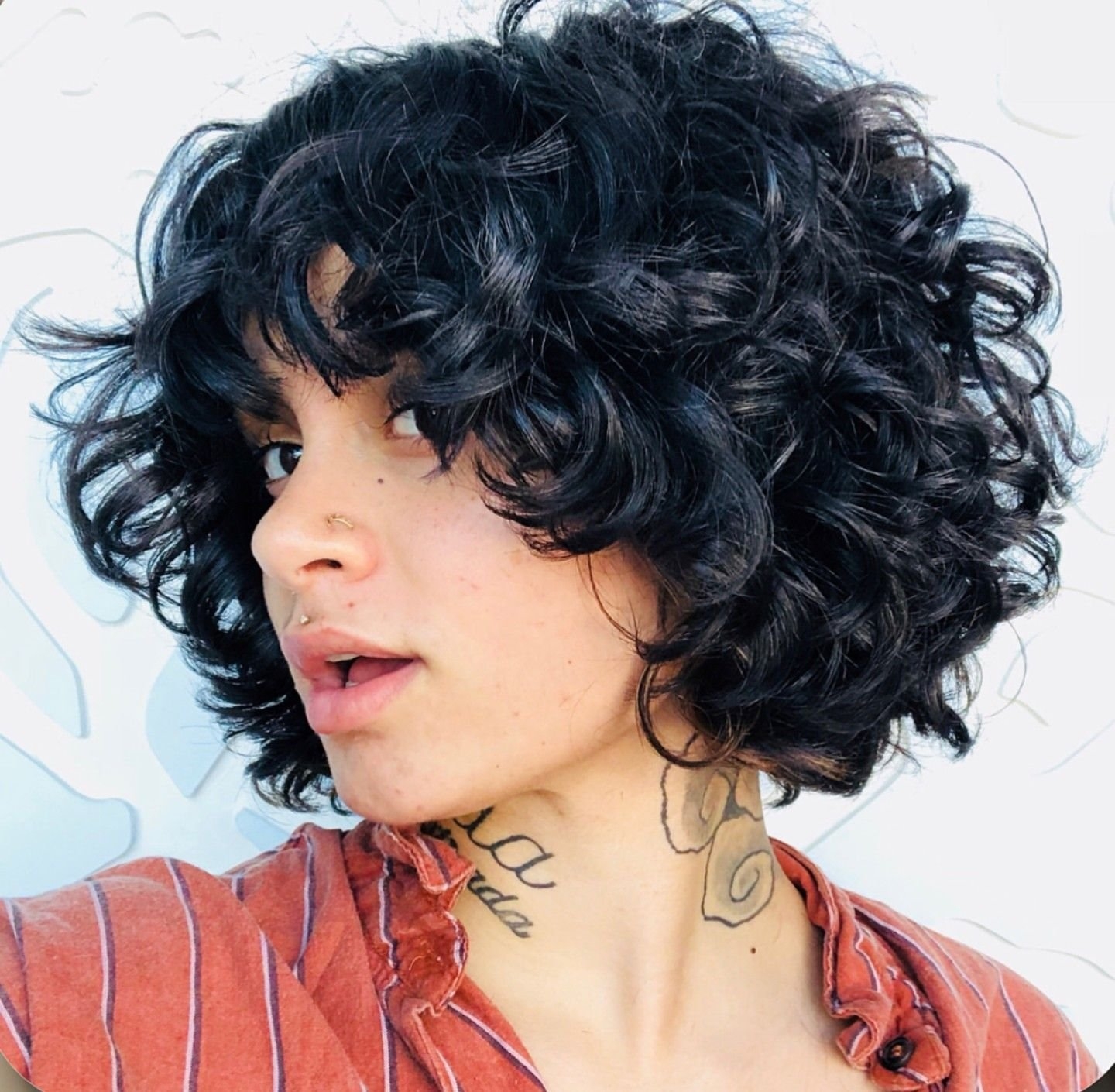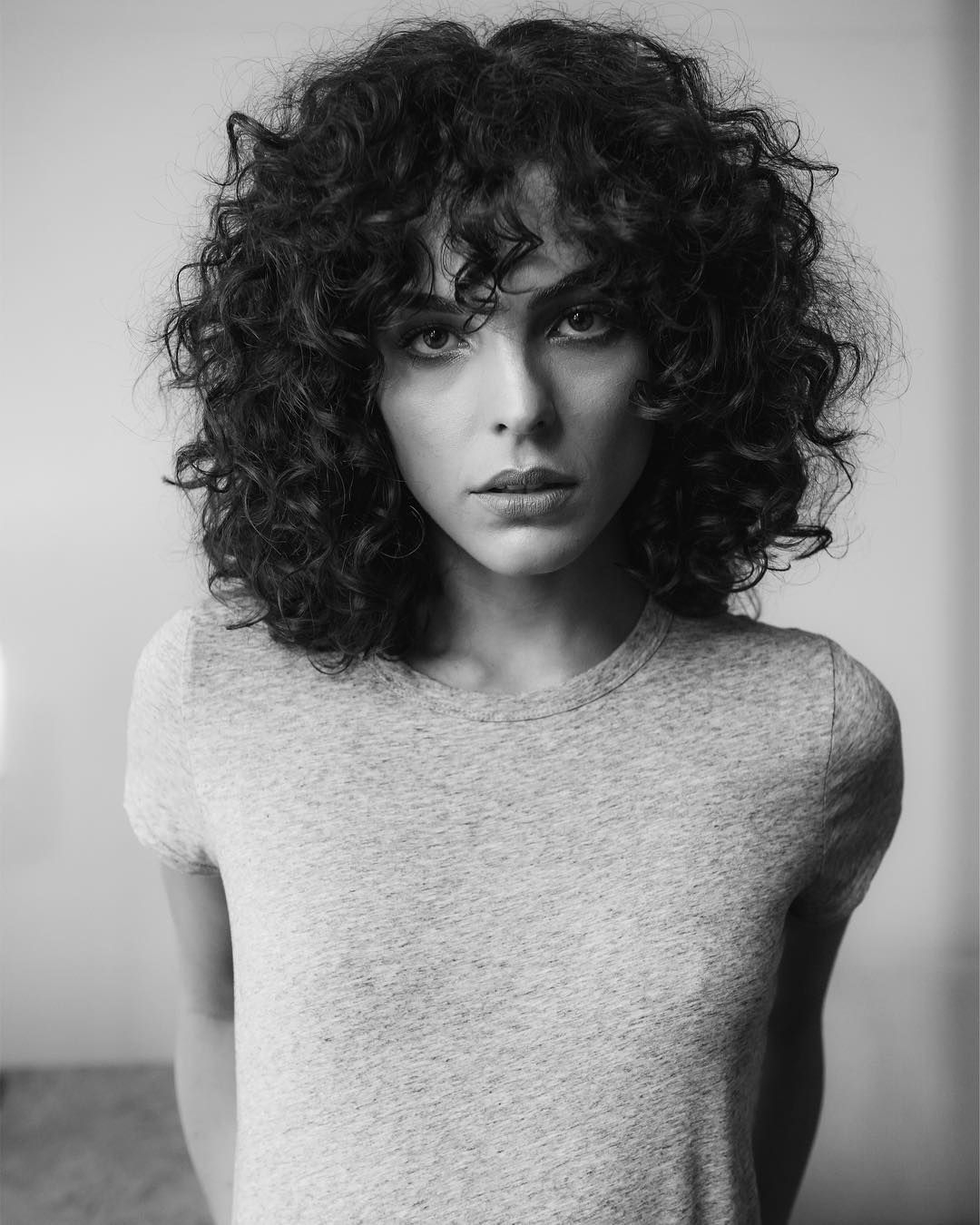 Стрижка Каскад на средние волосы с челкой 2022 на волнистые волосы