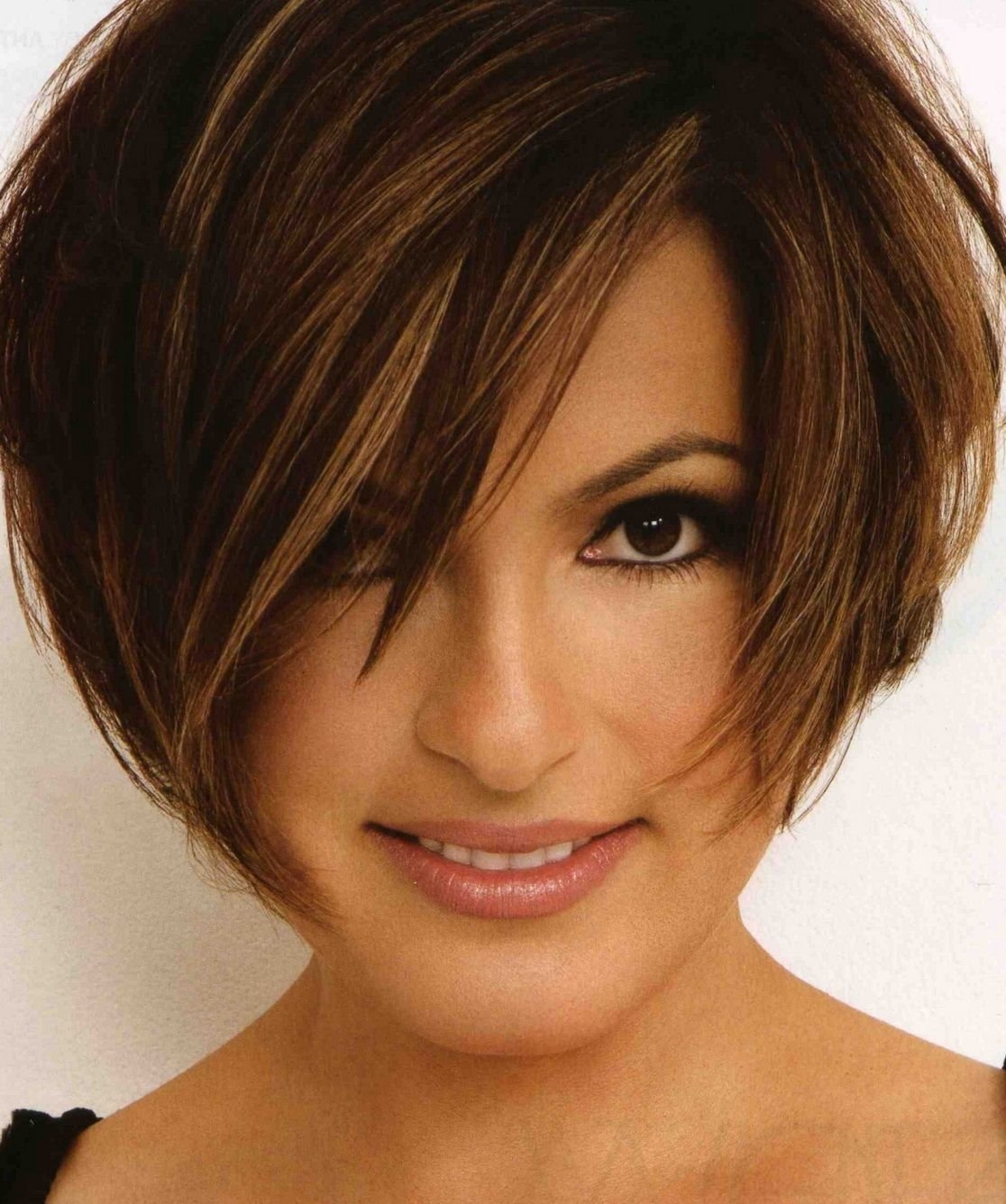 Стрижка типа каре на средние волосы с челкой для круглого лица