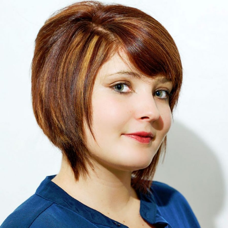 Причёски Каскад каре на ножке с чёлкой для круглого лица