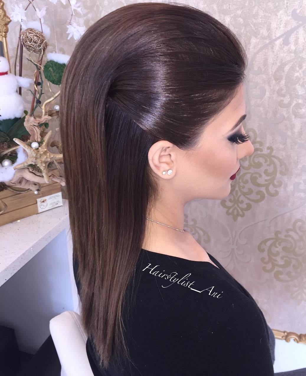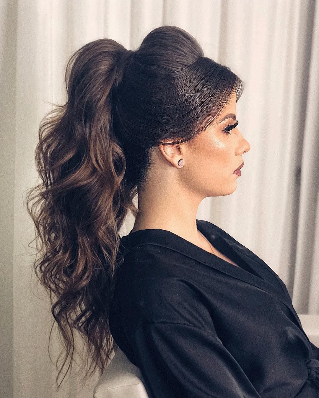 Прическа на длинные волосы хвост с начесом