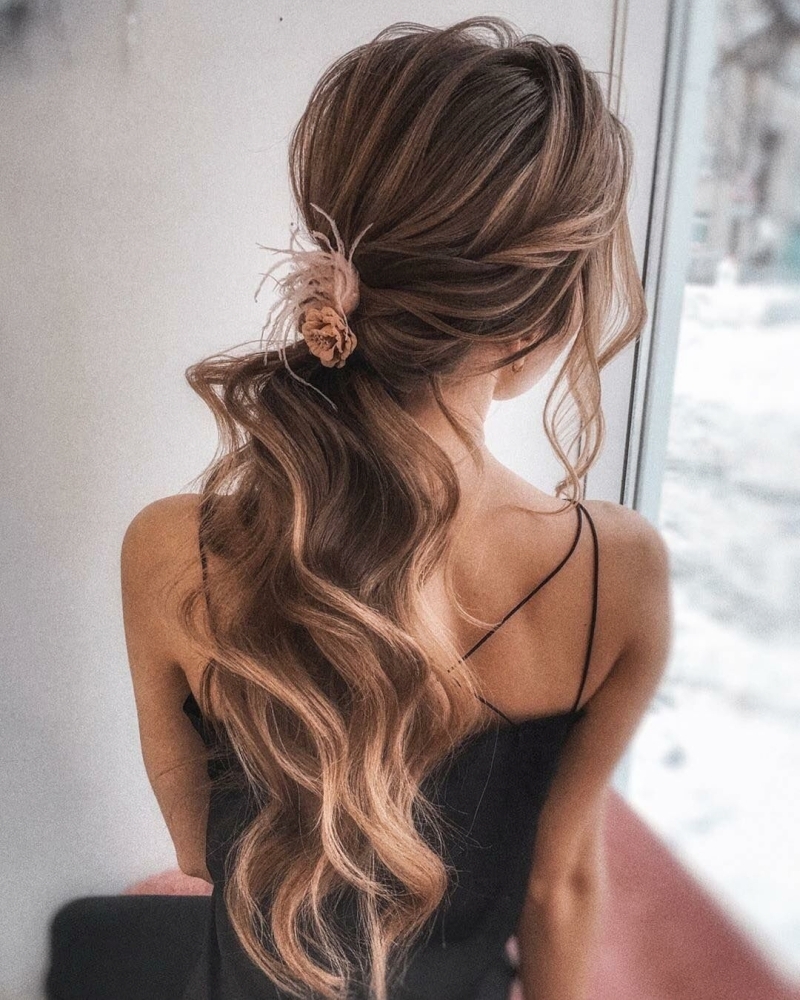 Волнистые волосы в хвосте