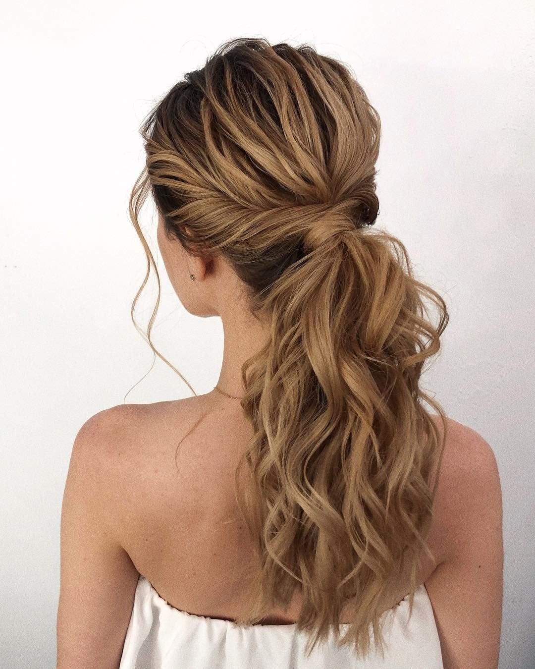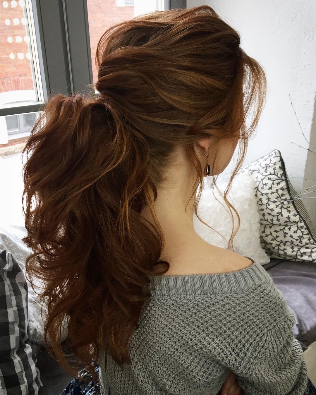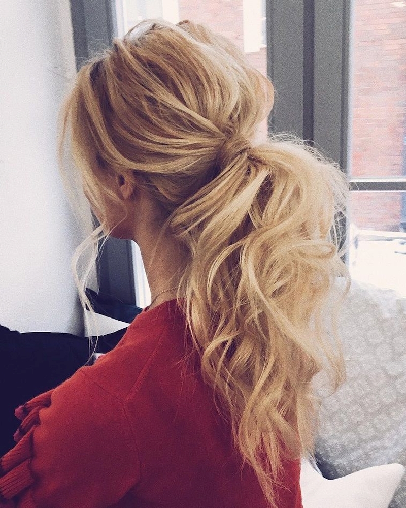 Прически с завитыми волосами собранные в хвост