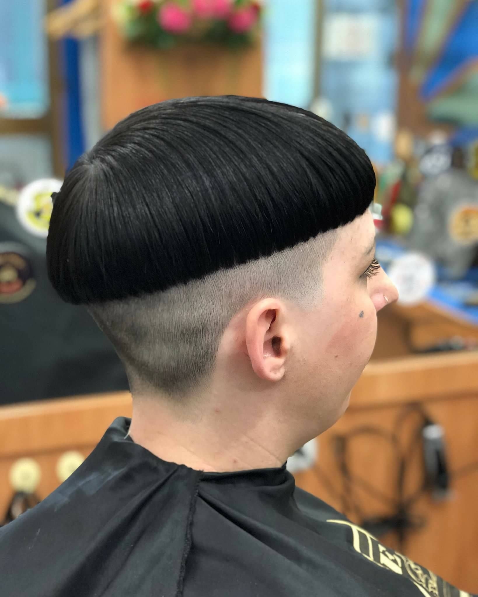 Стрижка под горшок с бритым затылком