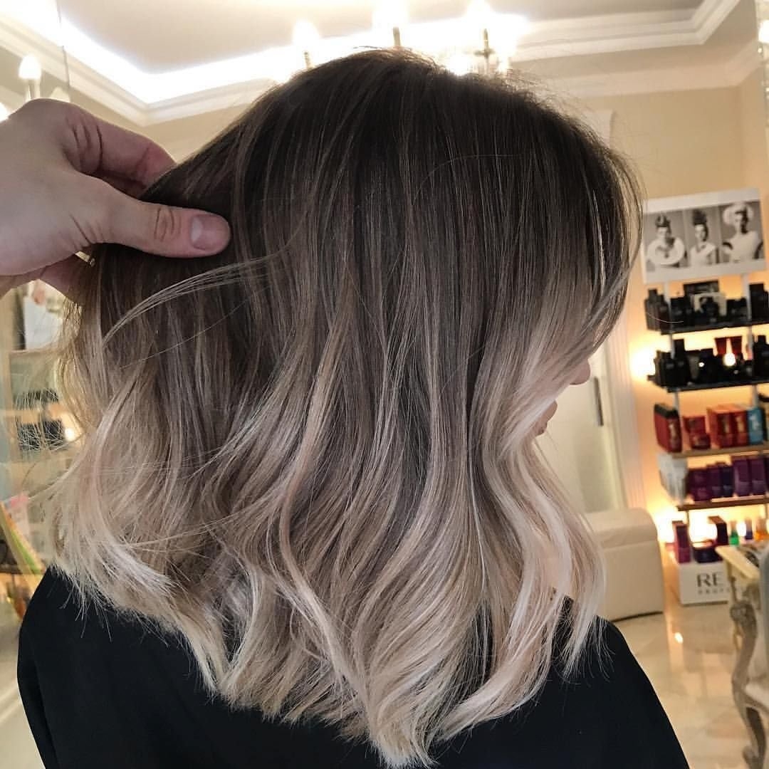 Светлый балаяж на темные волосы средней длины