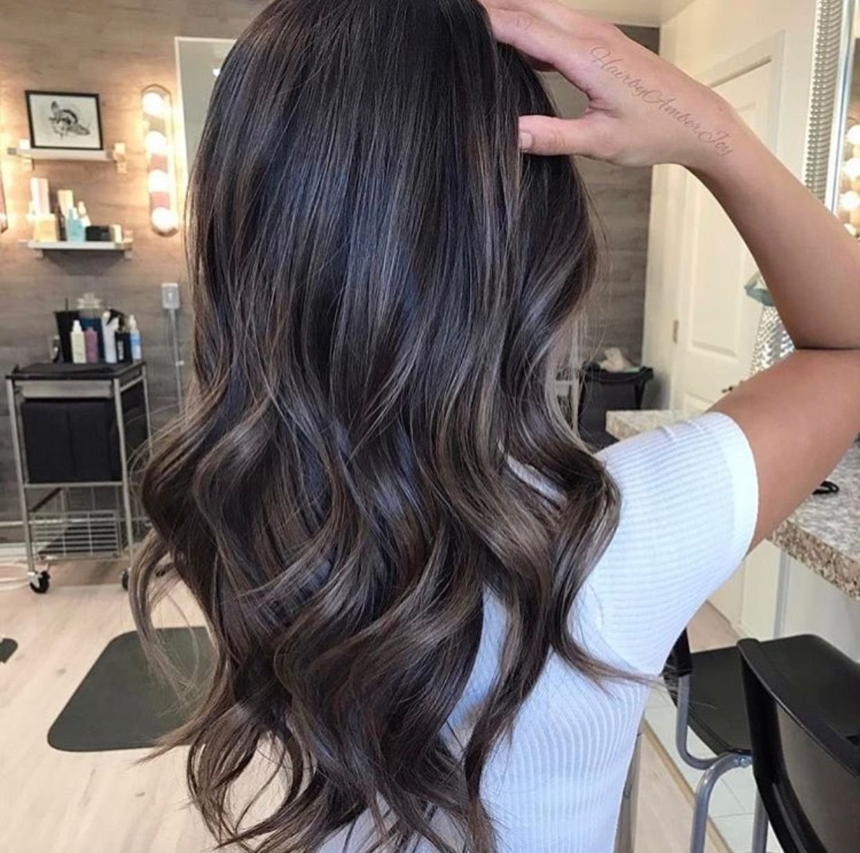 Пепельный балаяж на темные волосы