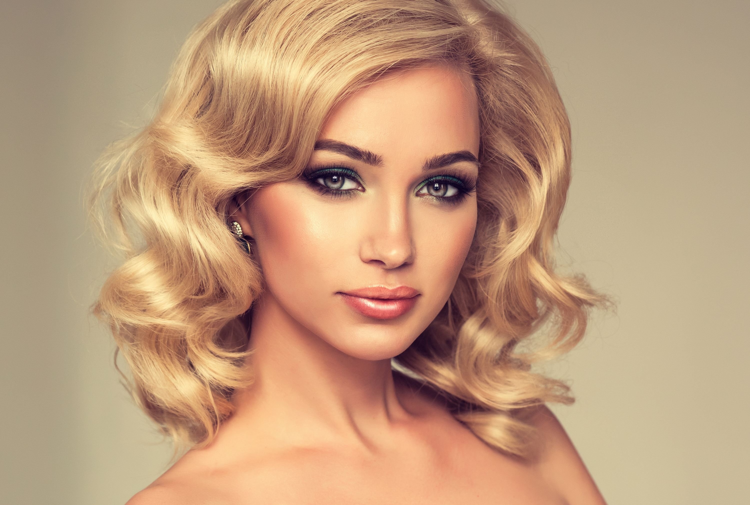Голливудские кудри на средние волосы блондинка