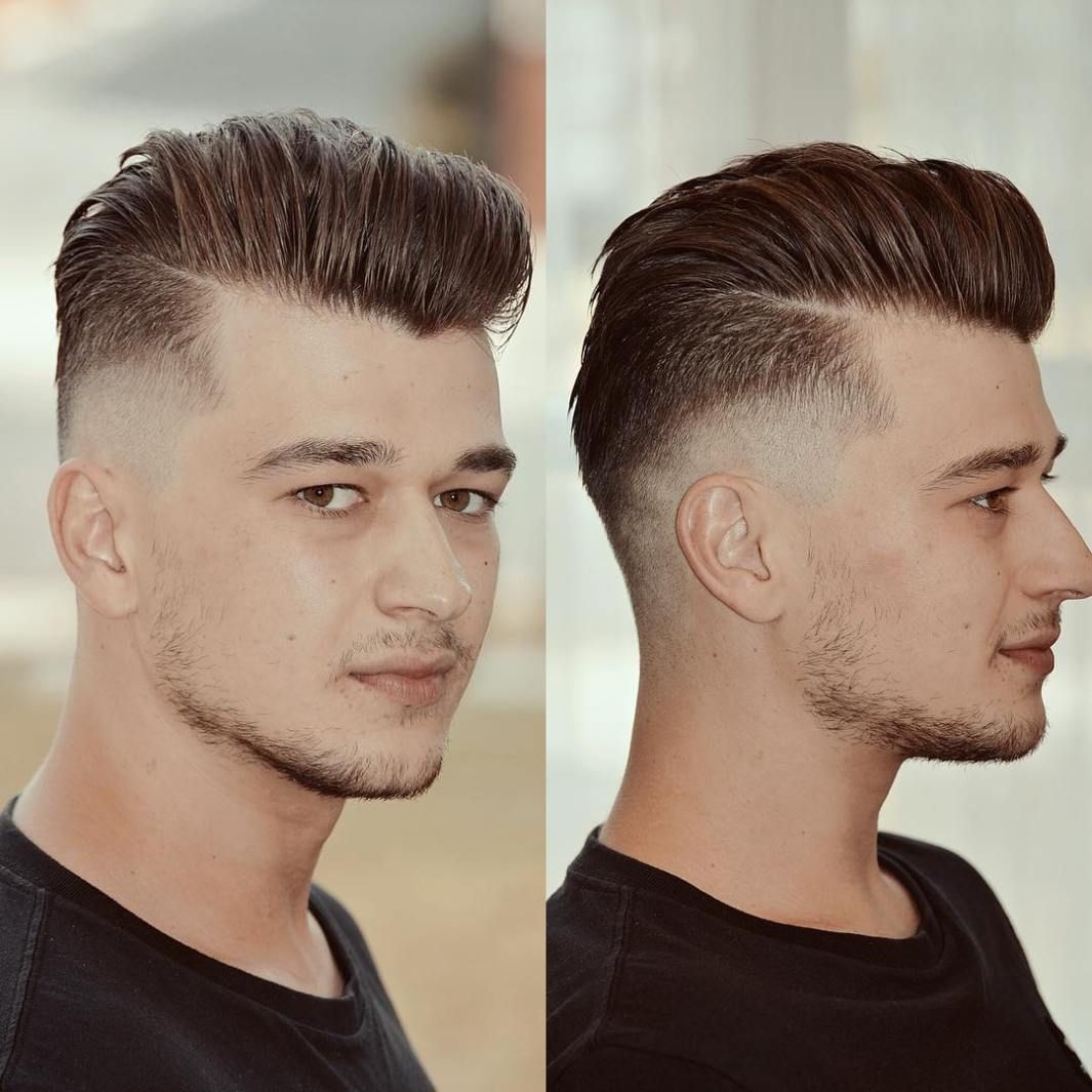 Стрижка с зачесом назад мужская выбритые виски