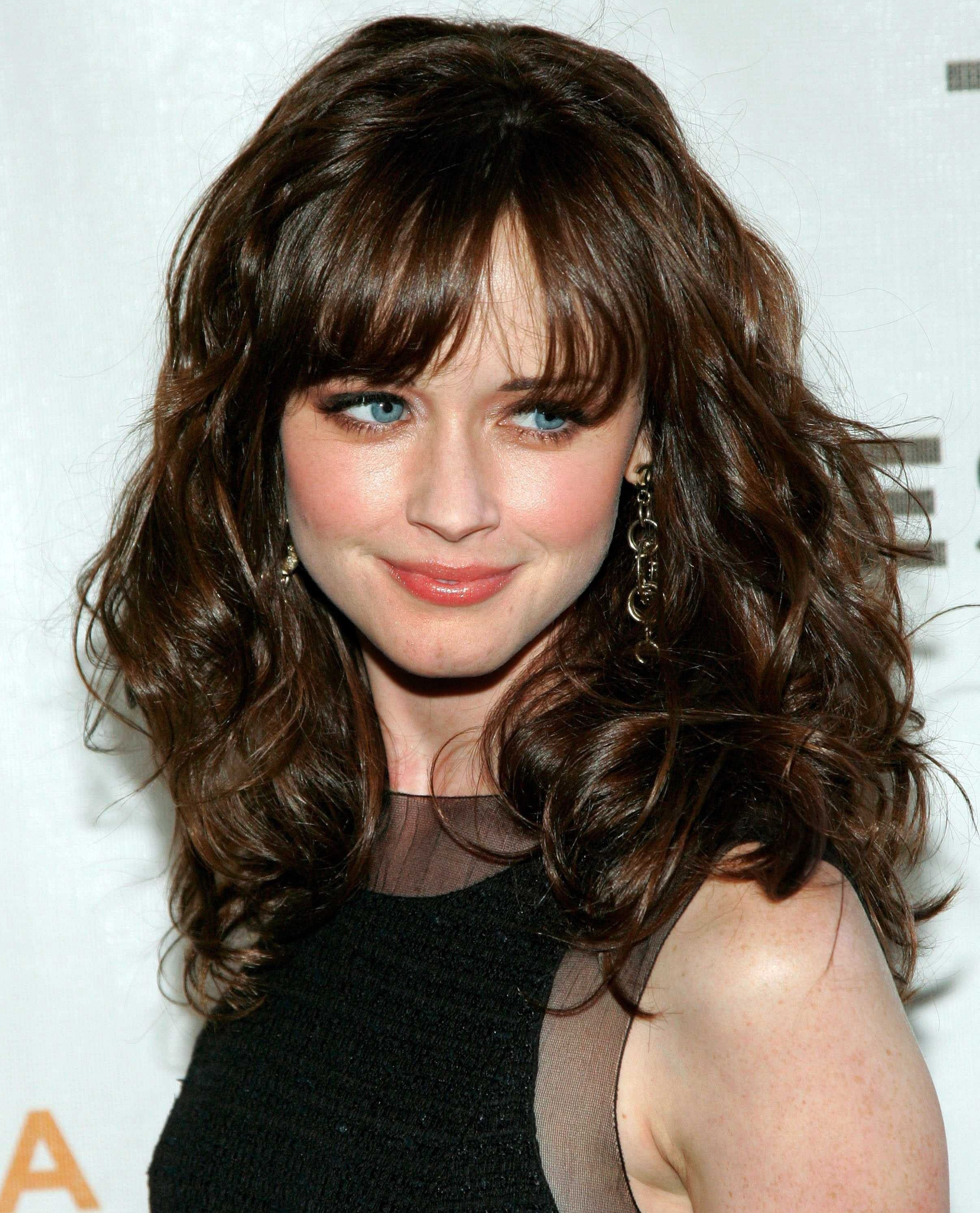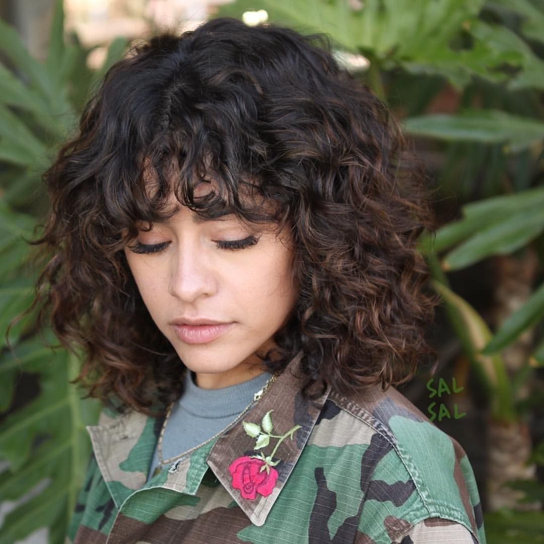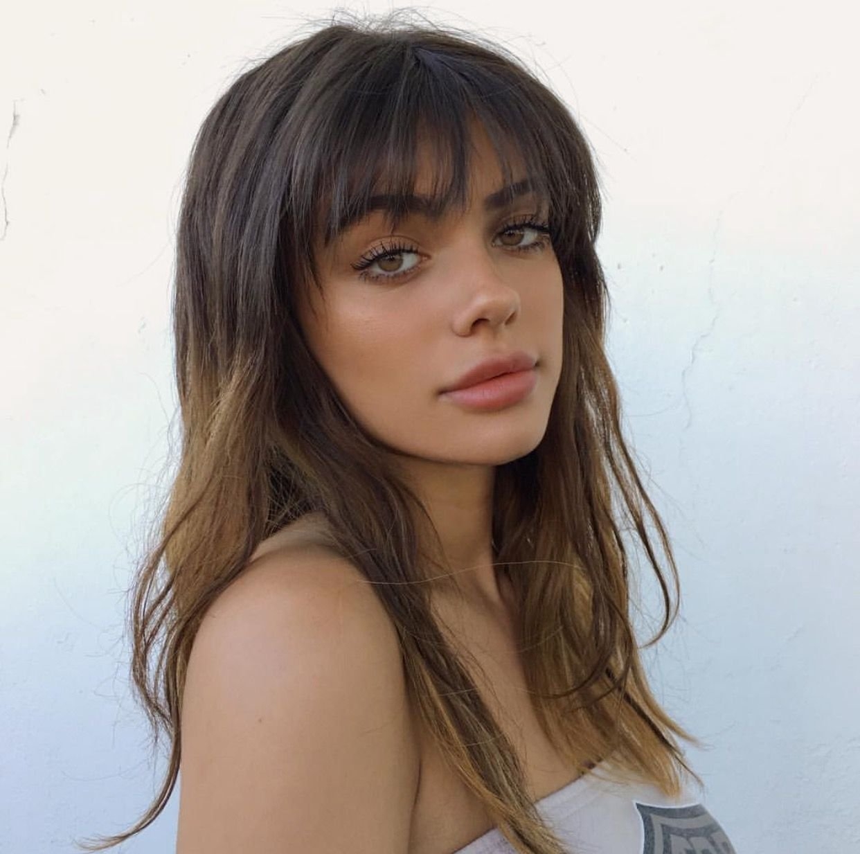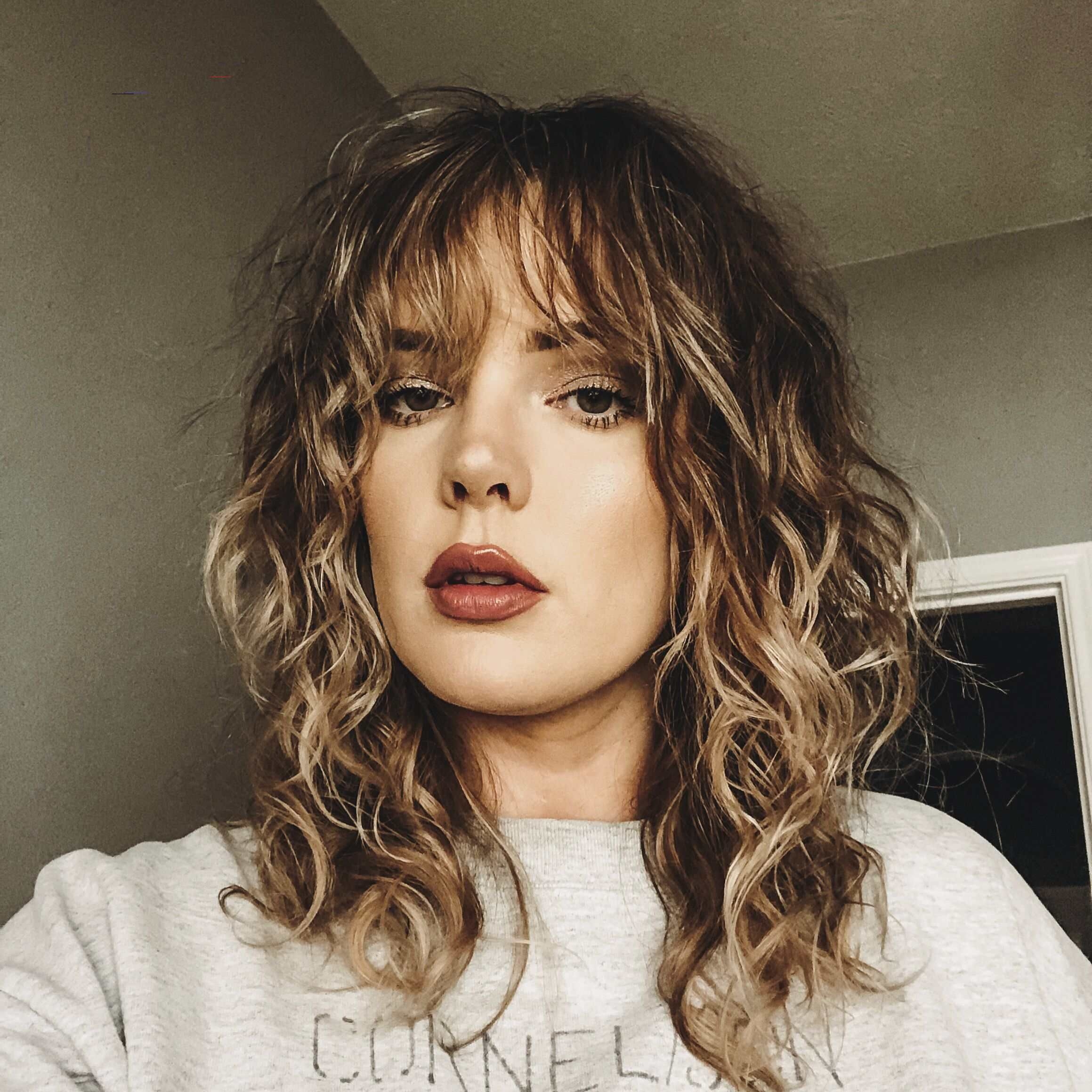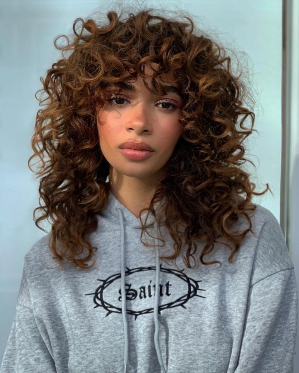 Стрижка Каскад на средние волосы с челкой 2022 на волнистые волосы