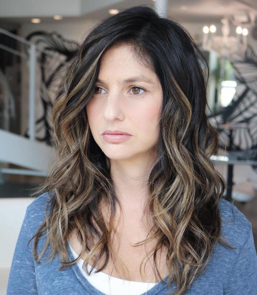 Стрижка Каскад женская на длинные волосы с челкой волнистые