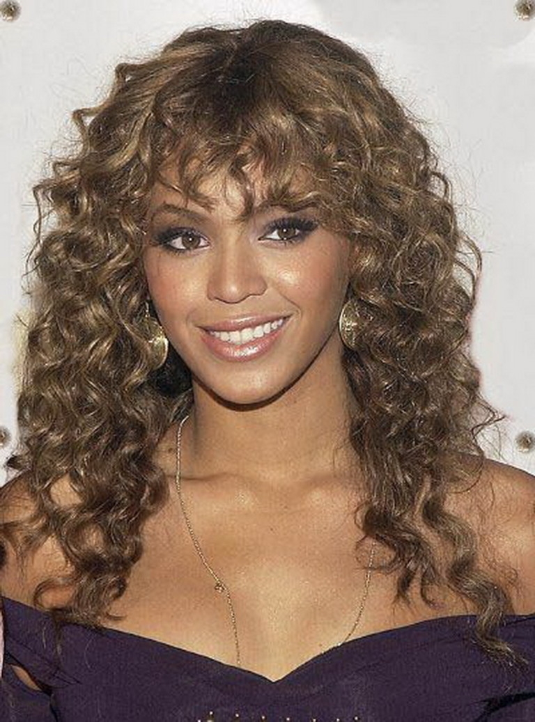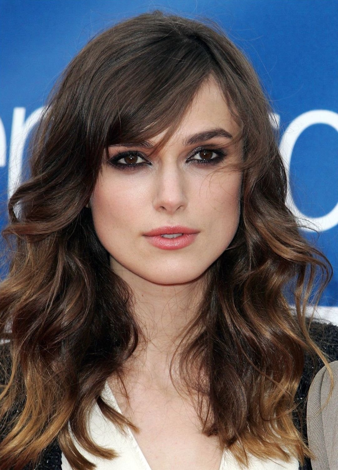 Стрижка с удлиненной челкой на длинные волнистые волосы