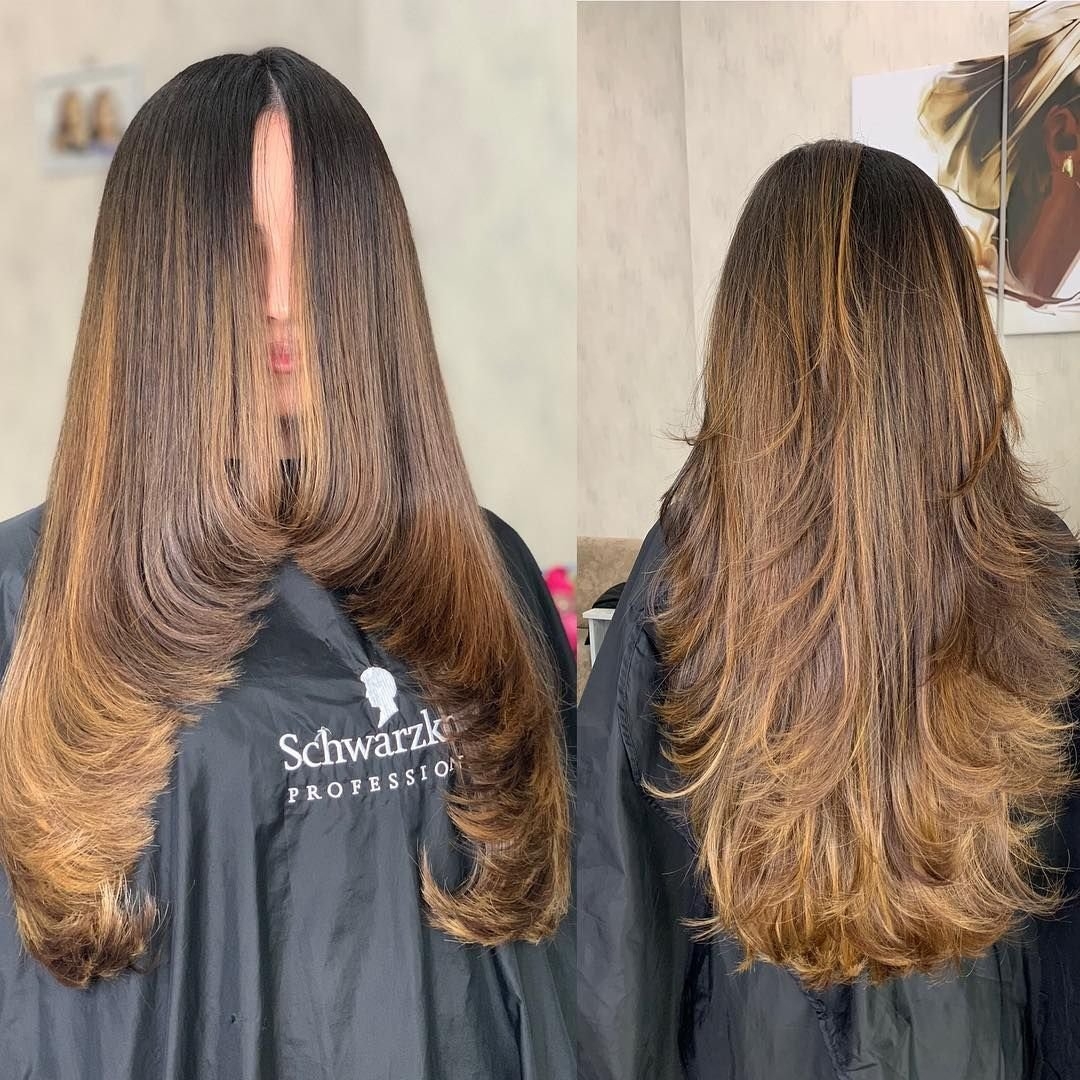 Стрижка слоями на длинные прямые волосы