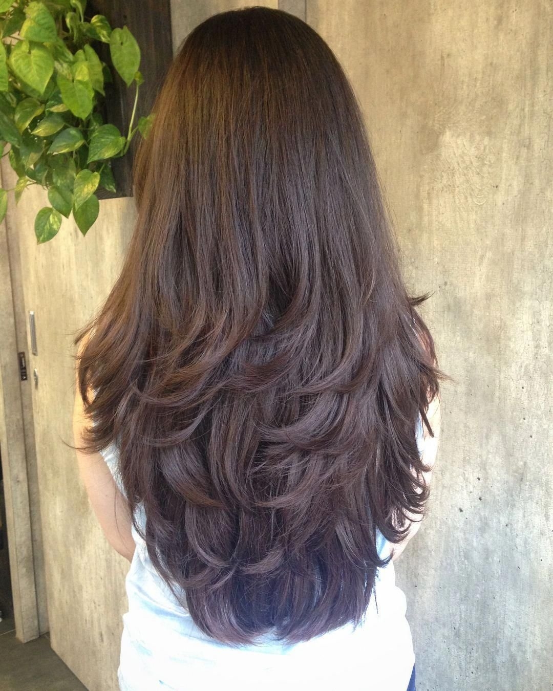 Стрижка Каскад на длинные волосы без челки вид сзади