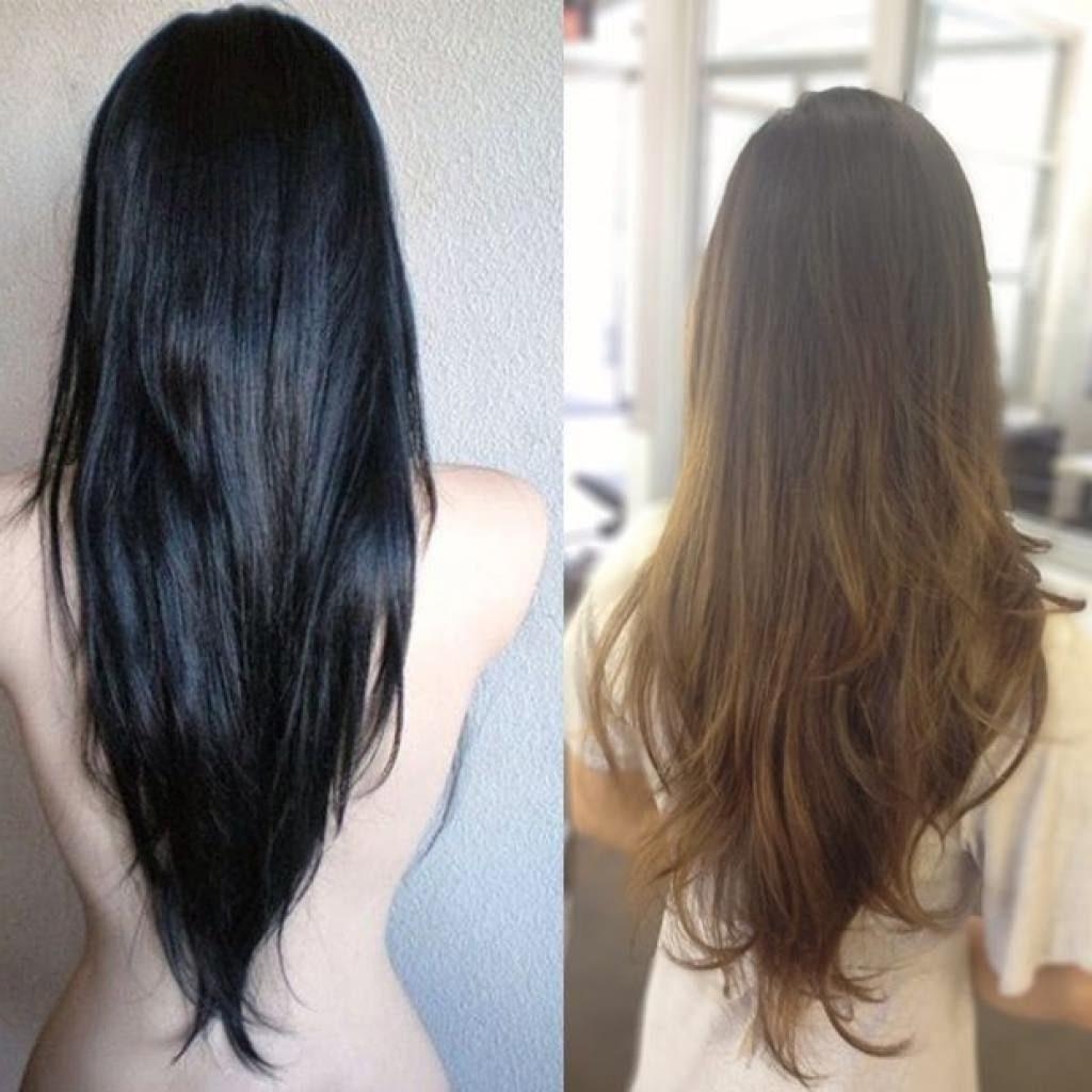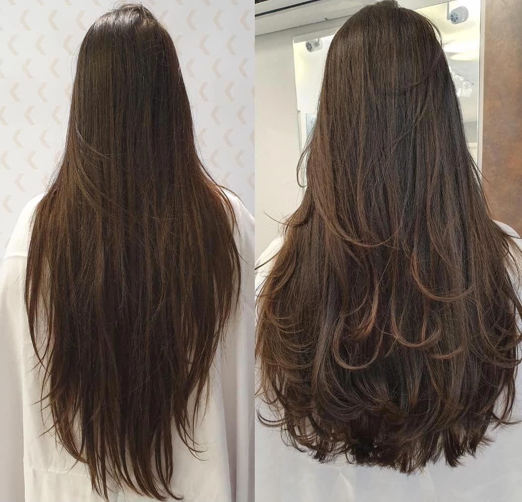 Стрижка лесенка до и после на длинные волосы