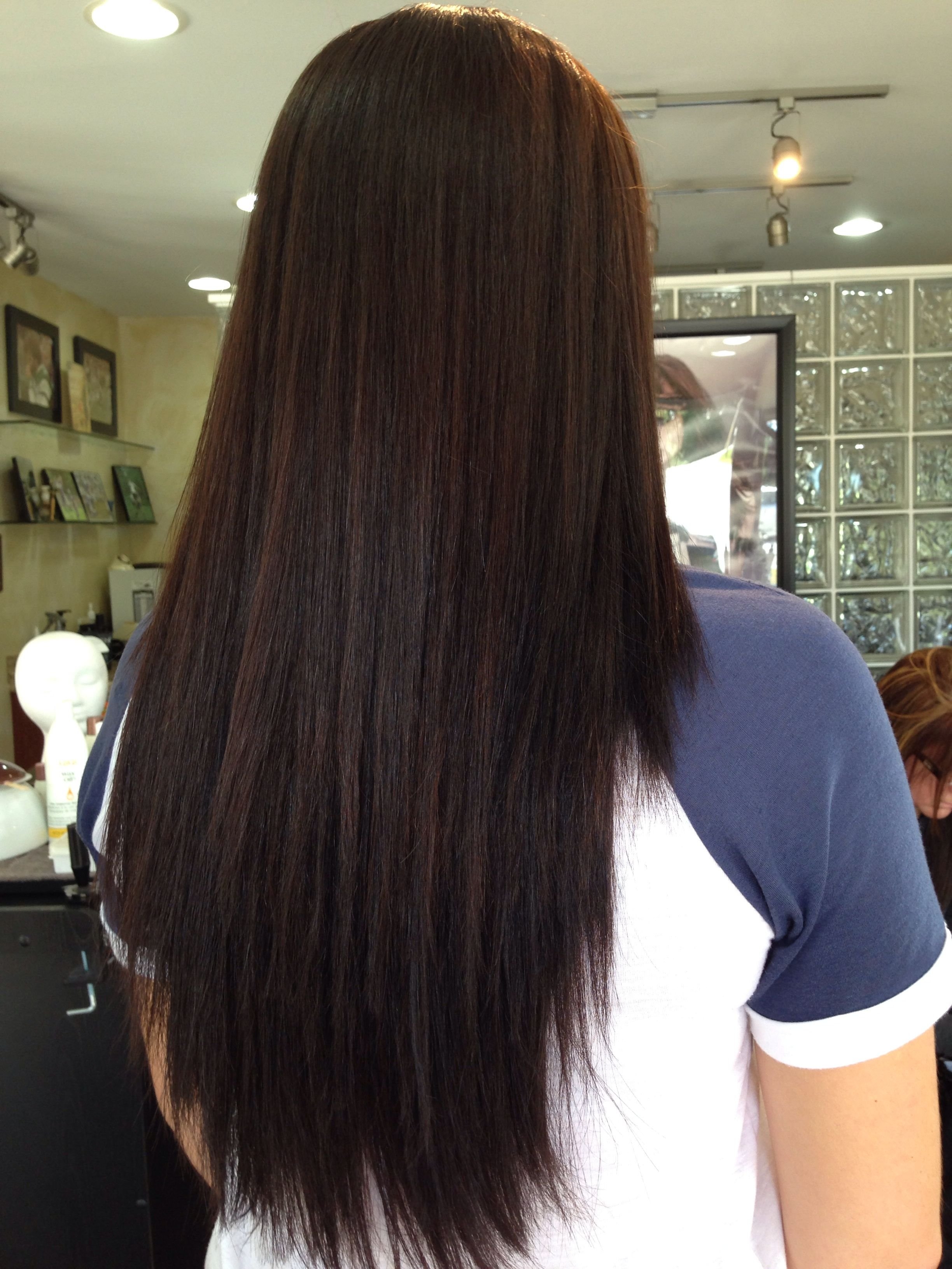 Стрижка Каскад на длинные темные волосы прямые