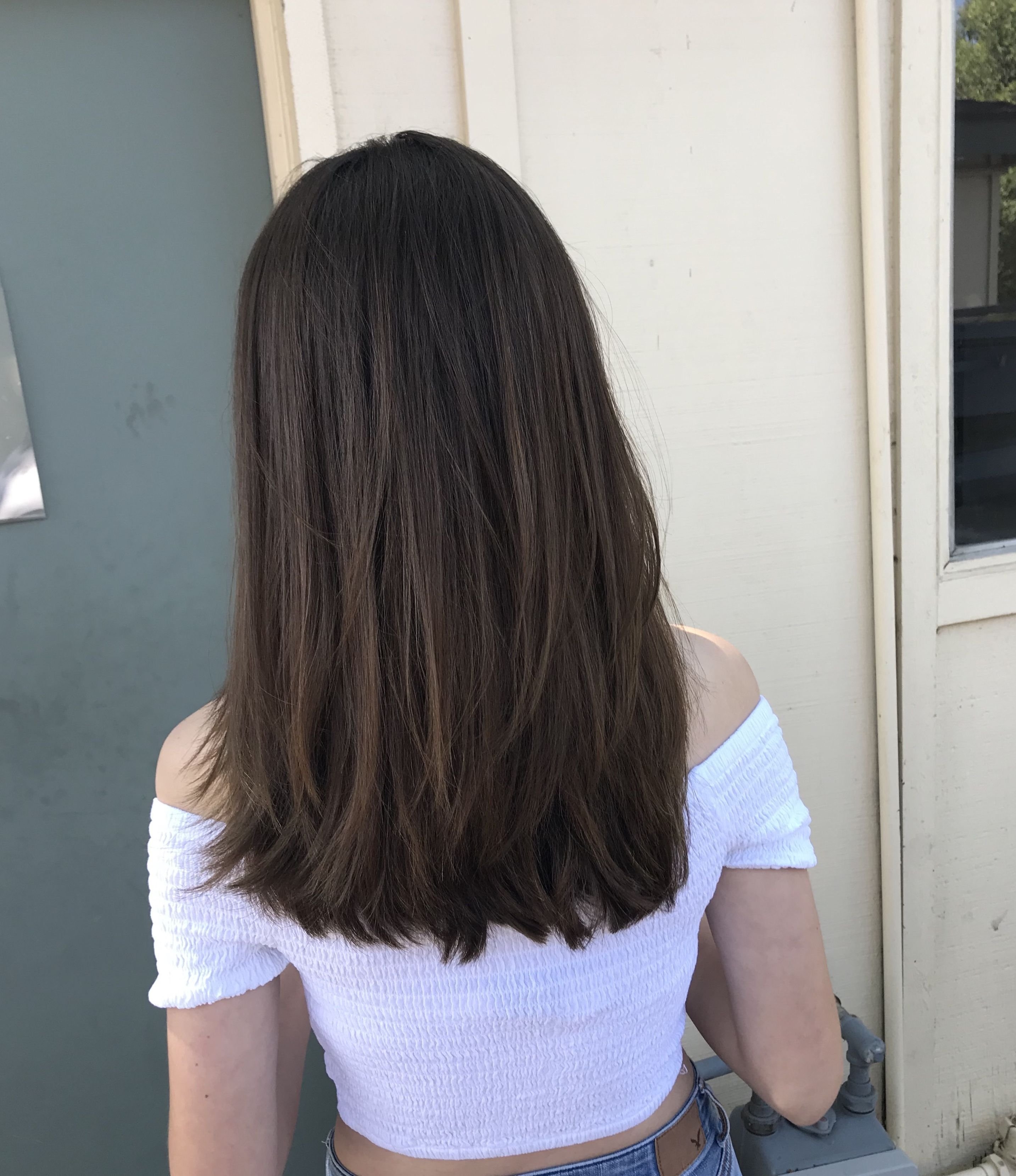 Стрижка на средние темные волосы с ровным срезом