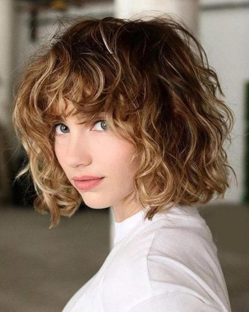 Каре на средние волосы с челкой на волнистые волосы